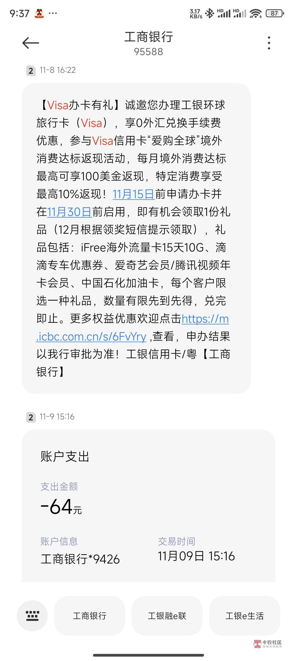 我没收到,就工行一直拒绝,不知道咋回事,其他银行都是一把过
