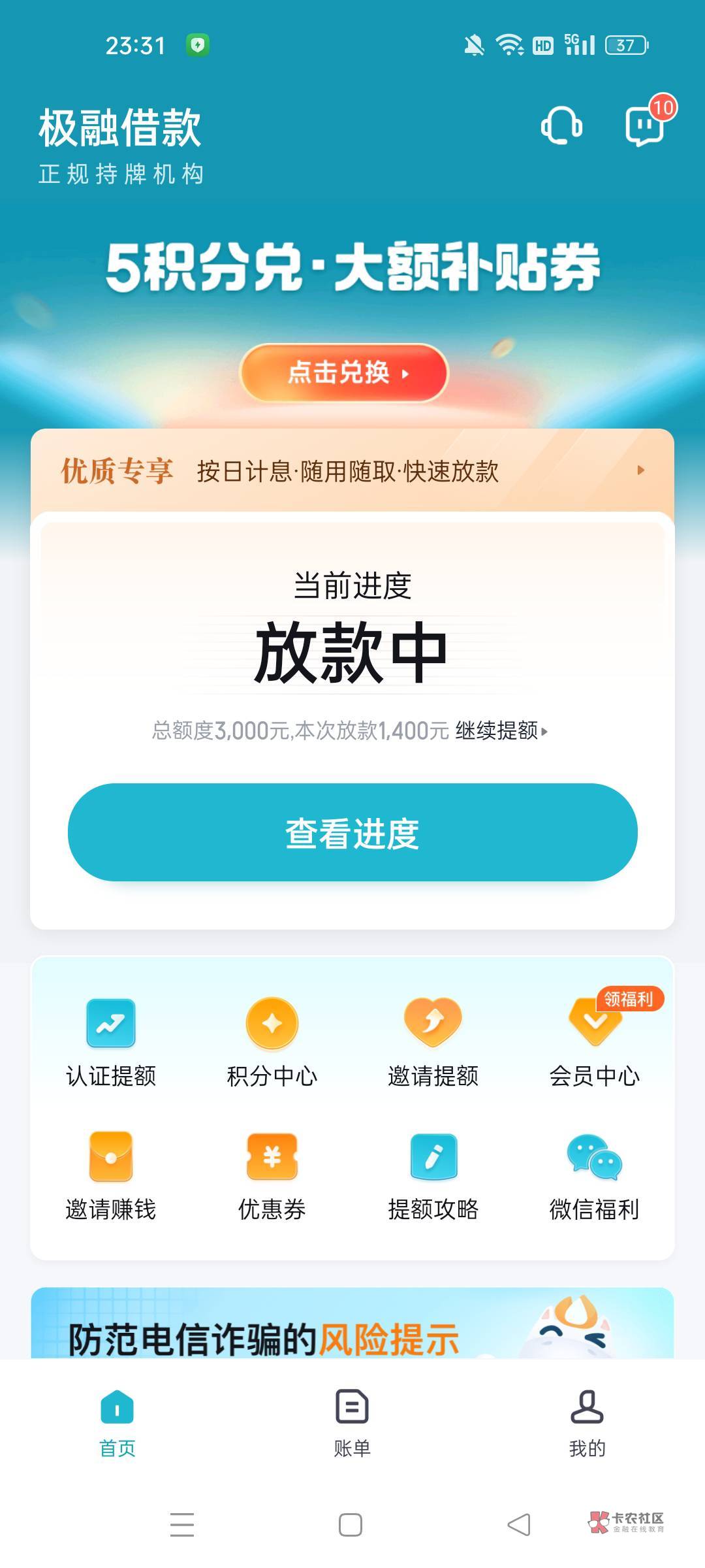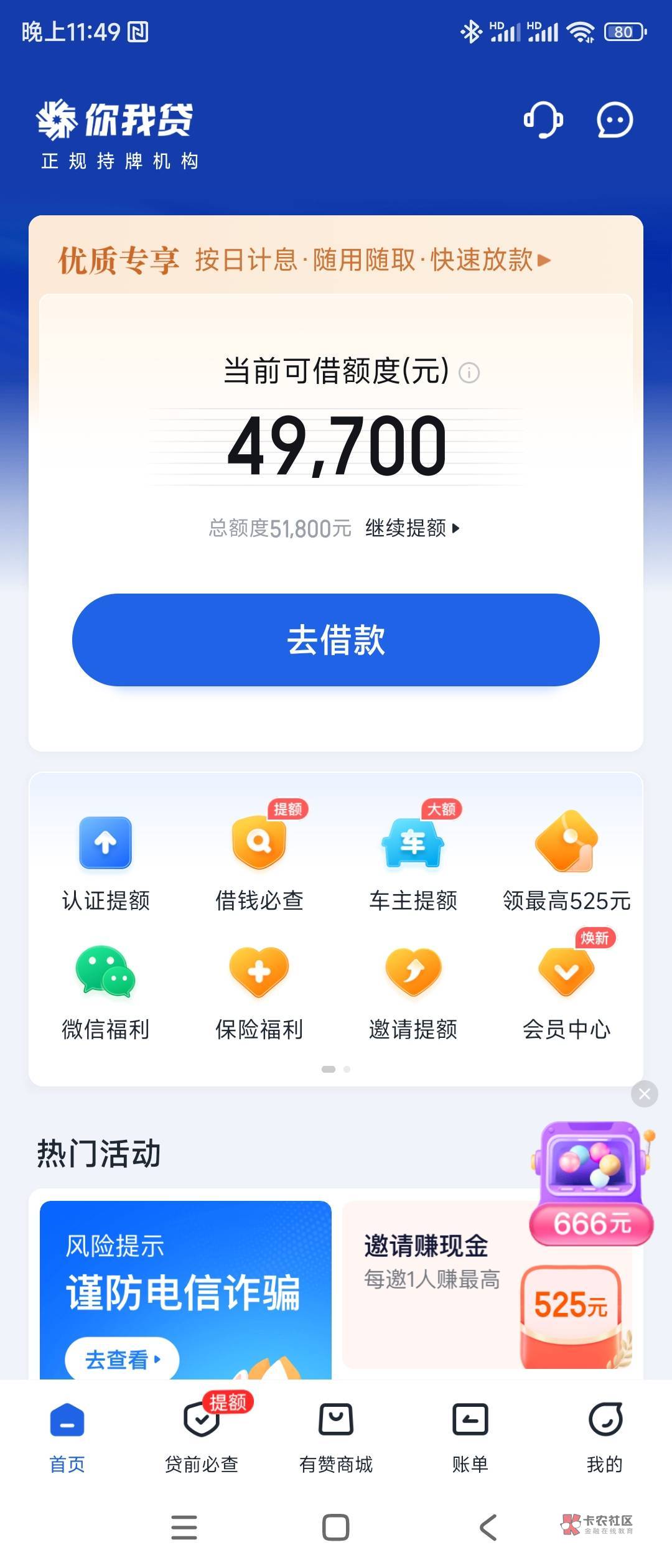 额度真高牛b牛b。。。我就是这三个月一直点你我贷,都是小黑屋十几天,今天我没点你我贷换成极融一下就匹配资方了,申请完接到个极融电话让我继续点击验证YHK,