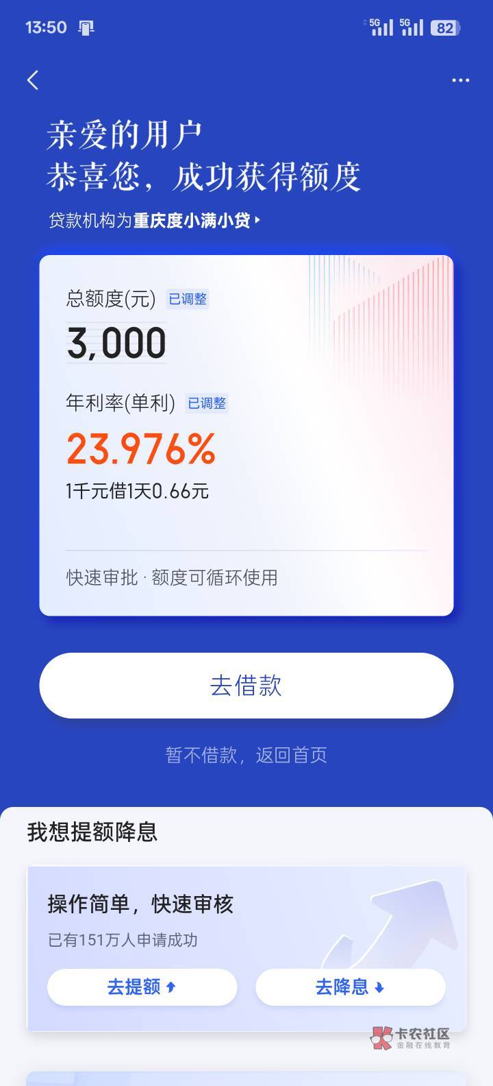 不一定 我首次出额也拒了