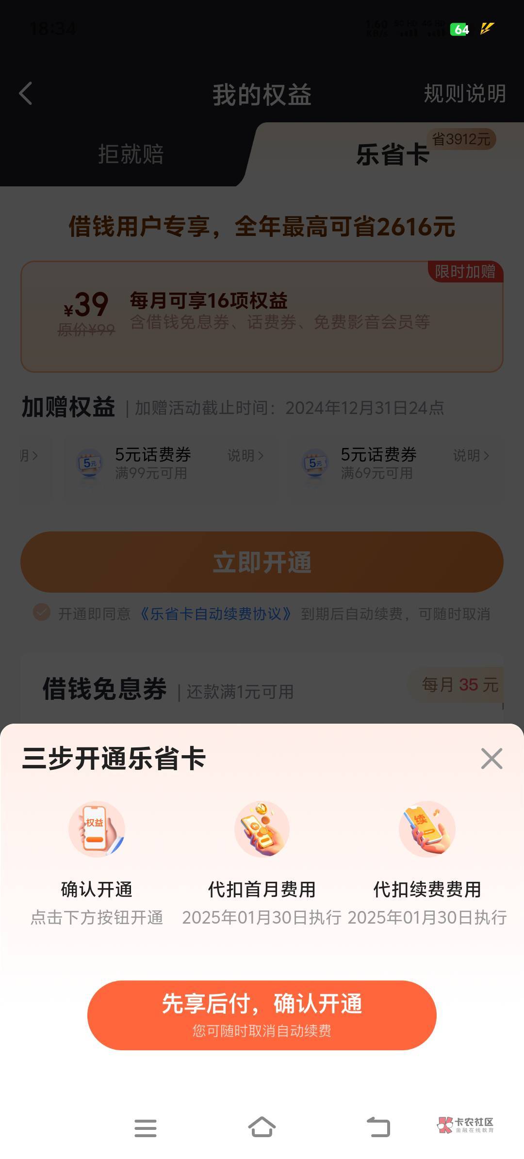 对啊,先用后付嘛。跟抖音的月付一样啊