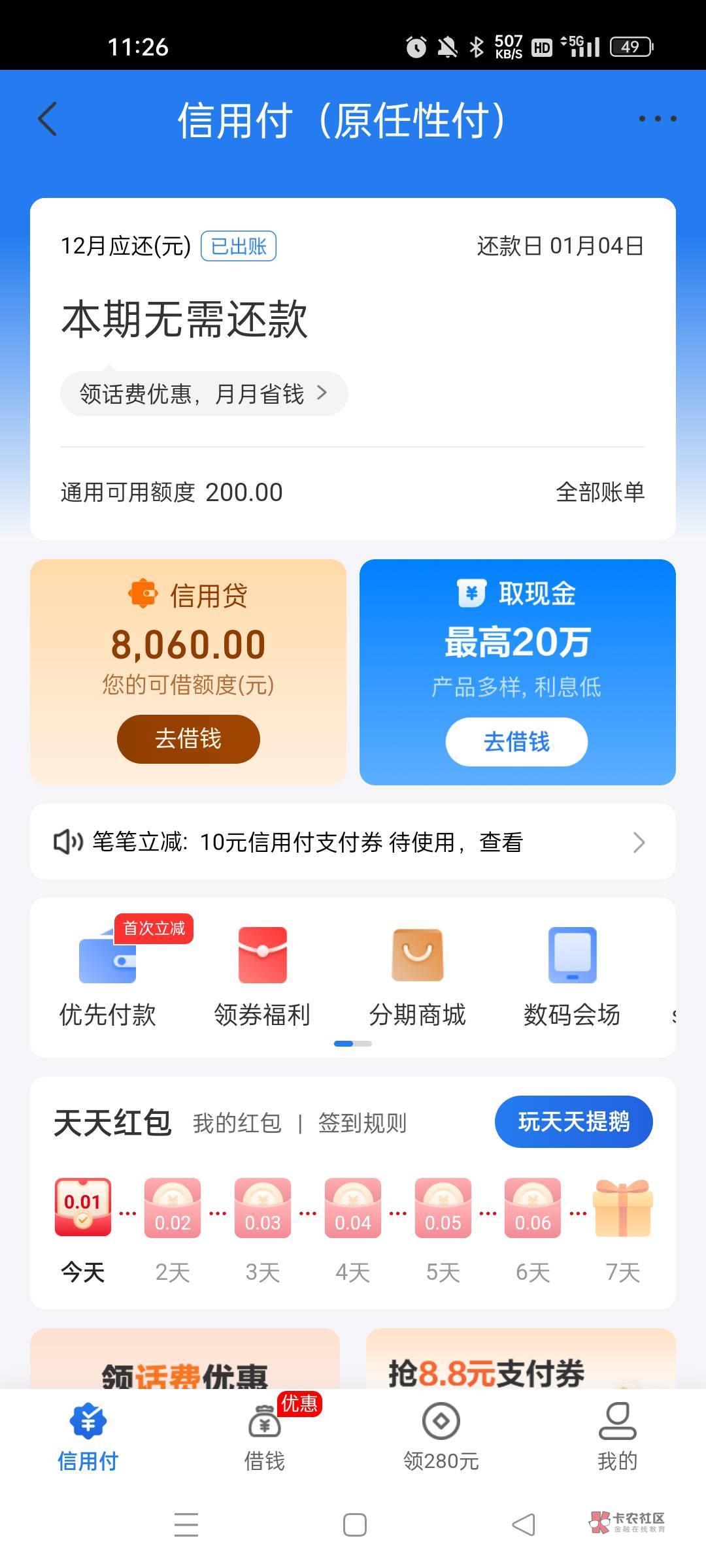 我那个里面有话费购