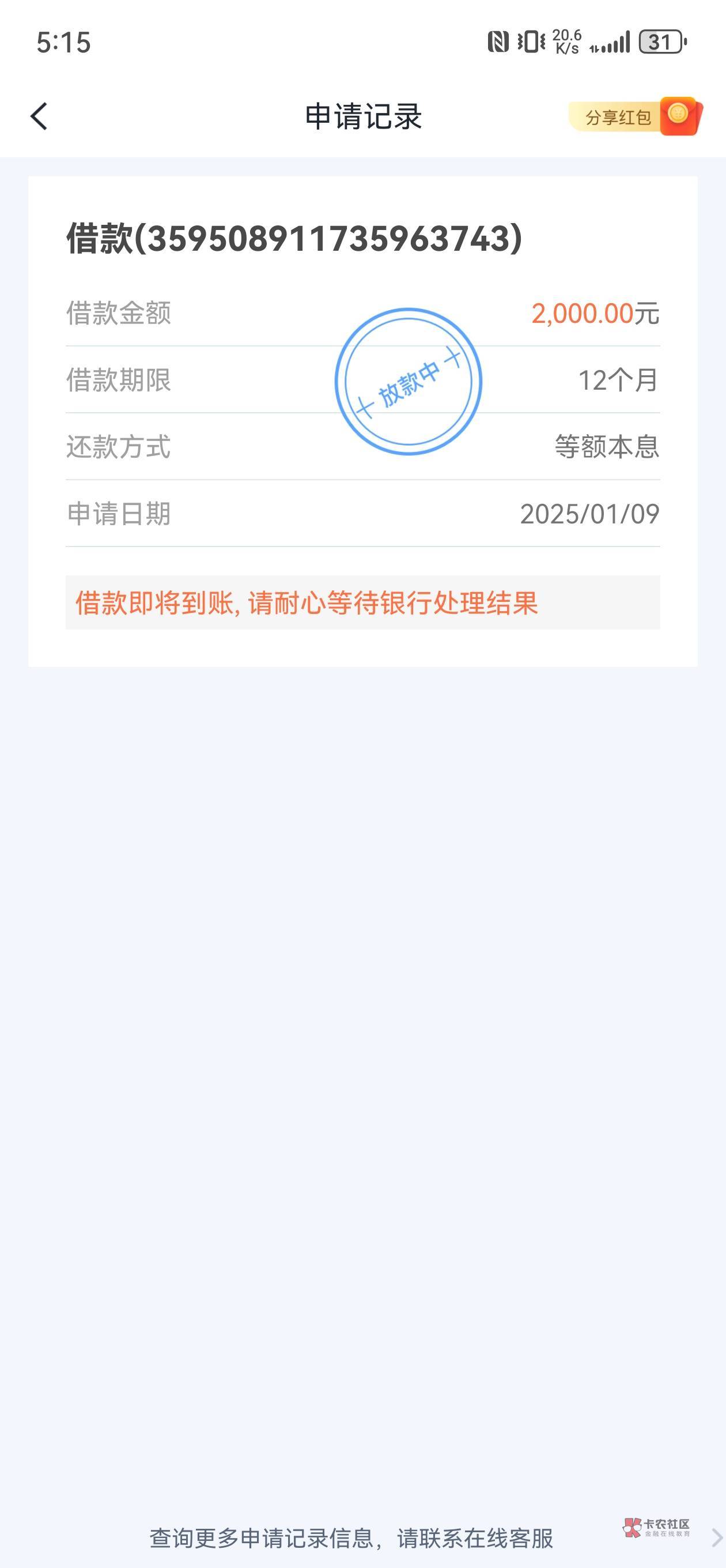 到了吗?我也显示放款中