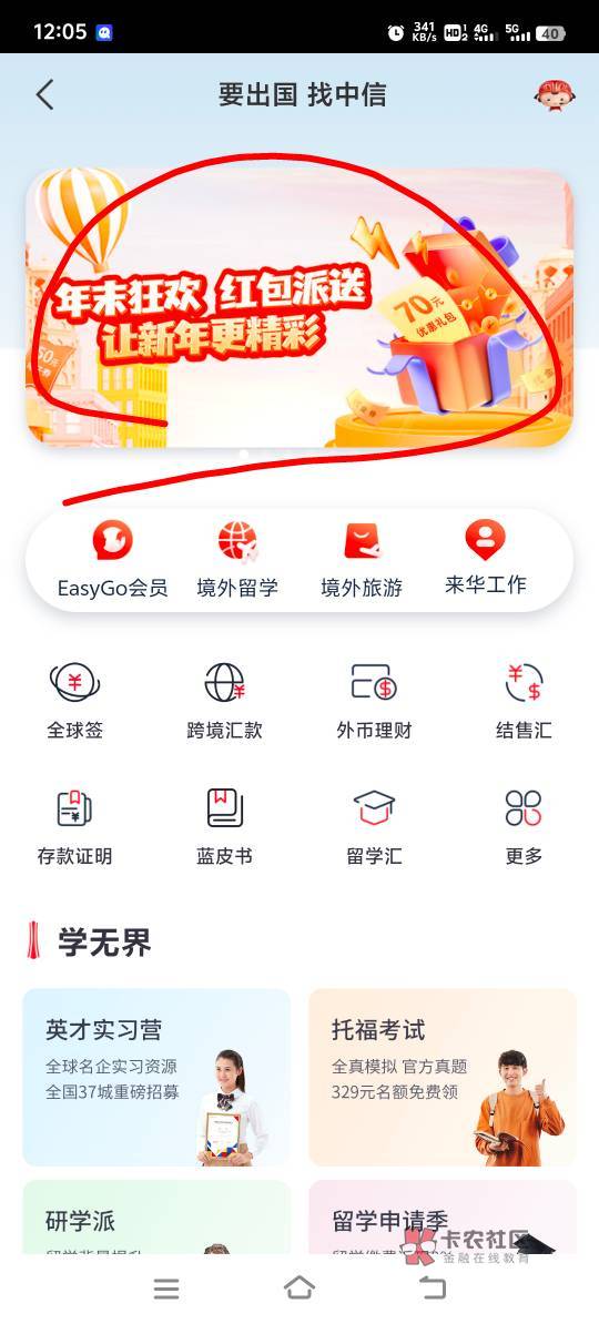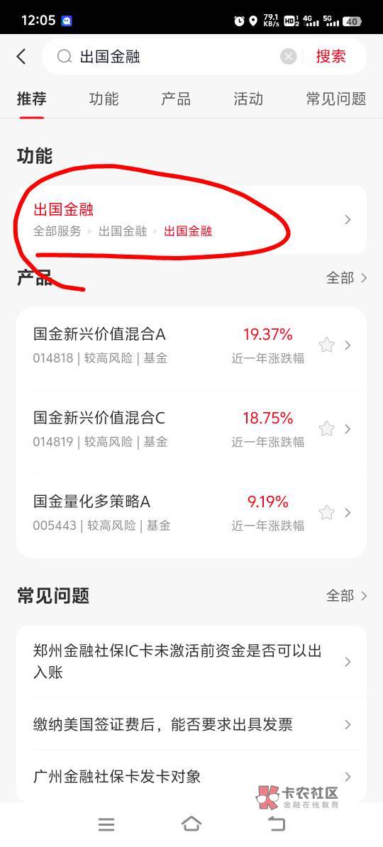 中信银行APP首页搜索出国金融,速度