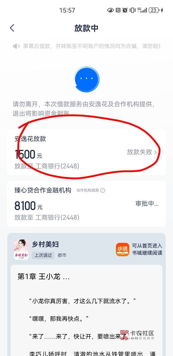 然后突然跳了机构给8100,试了一下,5分钟后下款了
