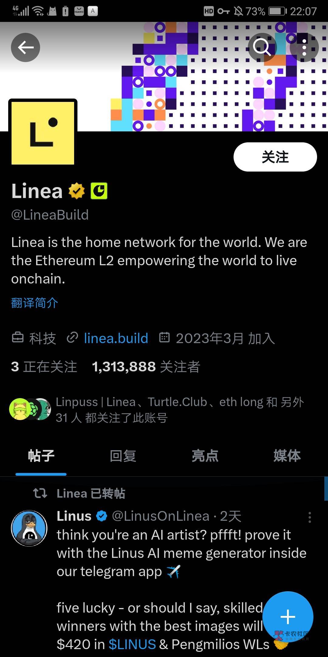 白名单,发行3333,这个是linea公链官方的项目,白的规则是可以优先购买0.015eth,没有白的话公售0.025eth