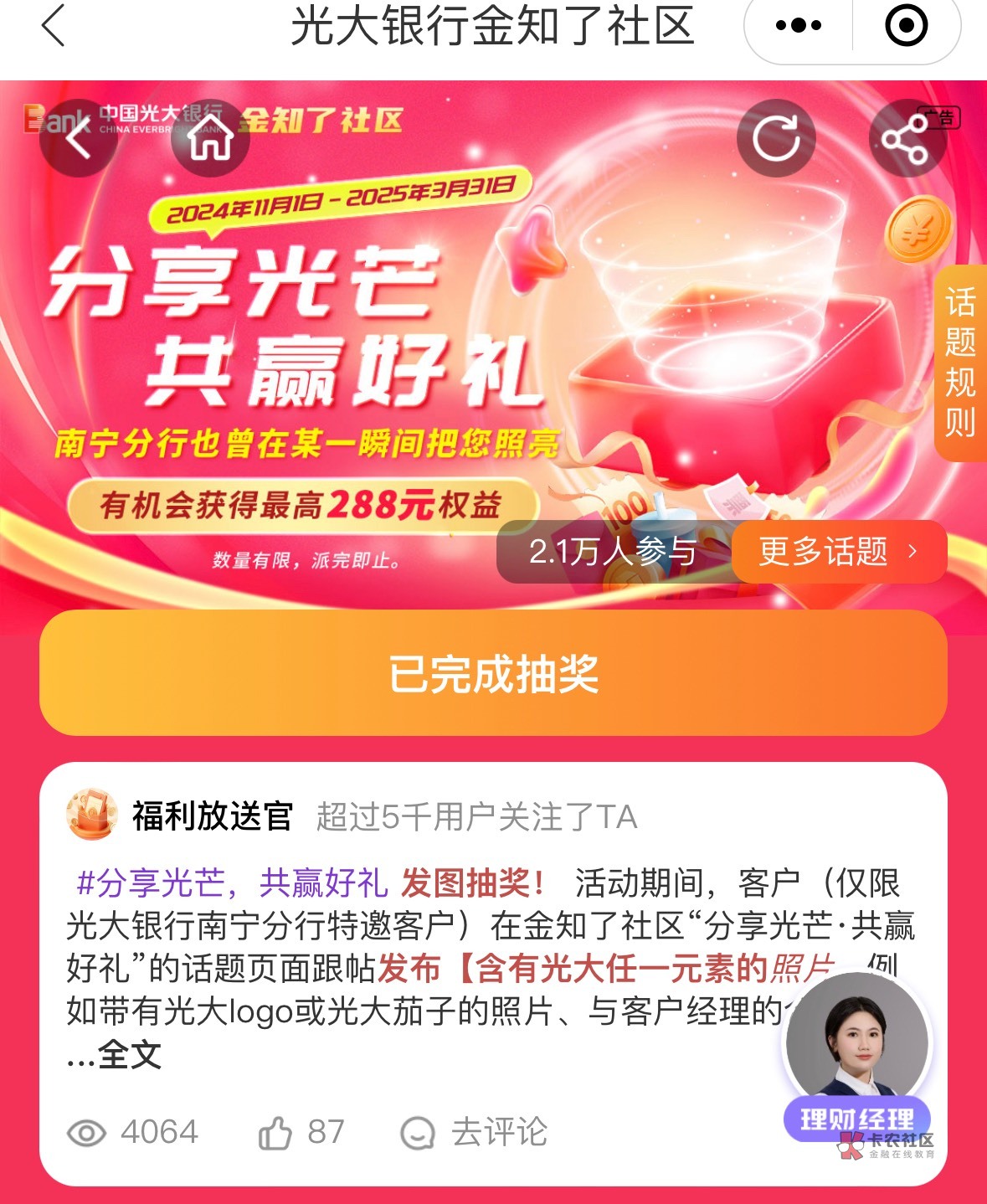 你要看看,顶部有没有抽奖入口,没有就不用发了