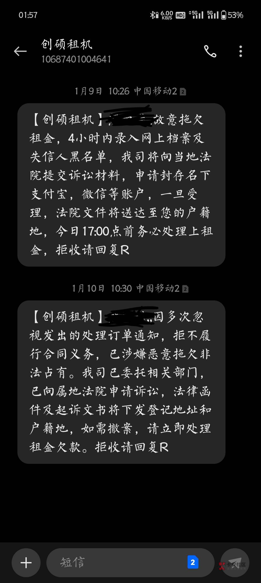 我家里人目前还没有收到,我上个月长银消费金融网贷逾期半天直接给我联系人发威胁短信恶心死我了