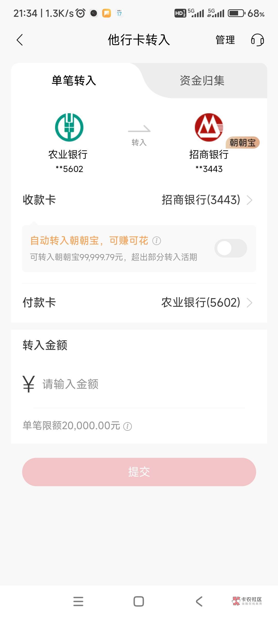 招行APP他行卡转入