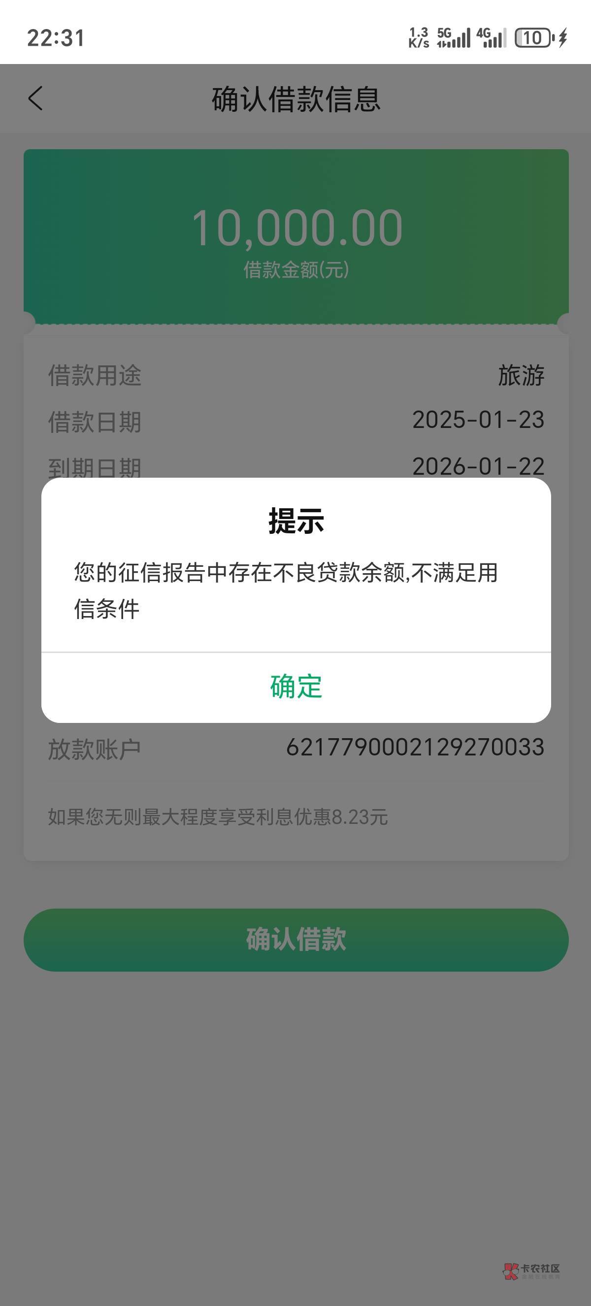 贵州农信有逾期都能贷,只要你有额度,我有工行信用卡呆帐4年多了,农信给了4万,就是每笔借款不能超过九千,超过九千显示和你一样的,你自己试一试,先借两千,能借出来,下笔在借多点,如果两千都借不出来那你只有叫银行从新给你受额度就能借了,放心从新给你受额度就是给你刷新一下,不会降额度,我也前就是银行经理不给我刷新,我给他买条福贵给他,才给我刷新借出来的,贵州农信每家都有最低两万的信用额度,不查征信,只有借钱的时候系统自动查征信,有逾期呆帐只要不是农信的,单笔低于一万都会放款