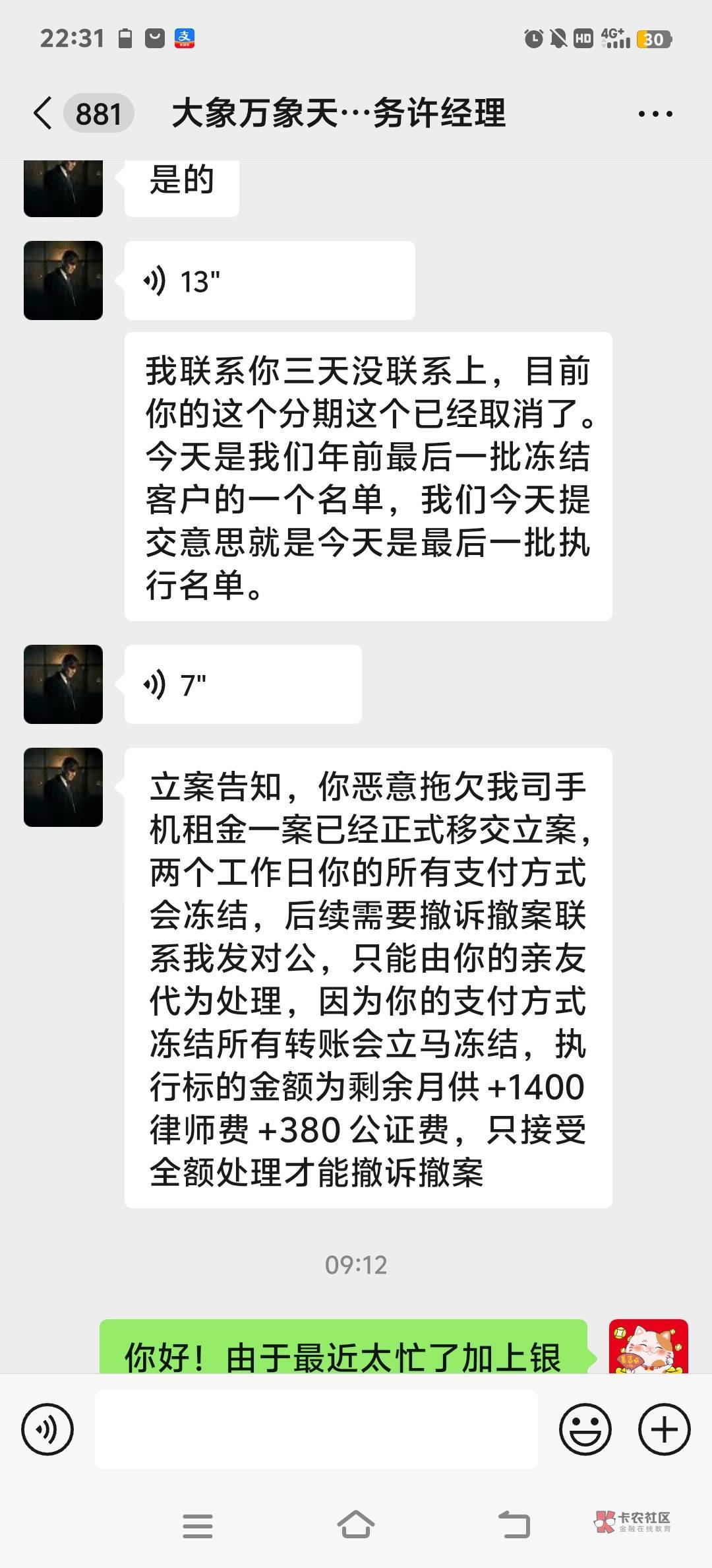 吓唬你的,有老哥逾期三个月都没事,这家就会这样,天天喊起诉执行