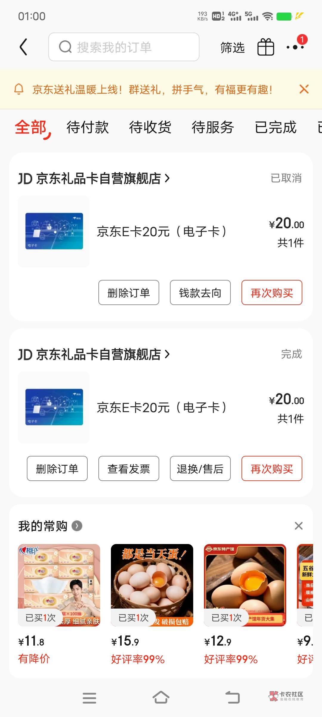 一样 云网用的大妈卡付的 回京东显示待支付