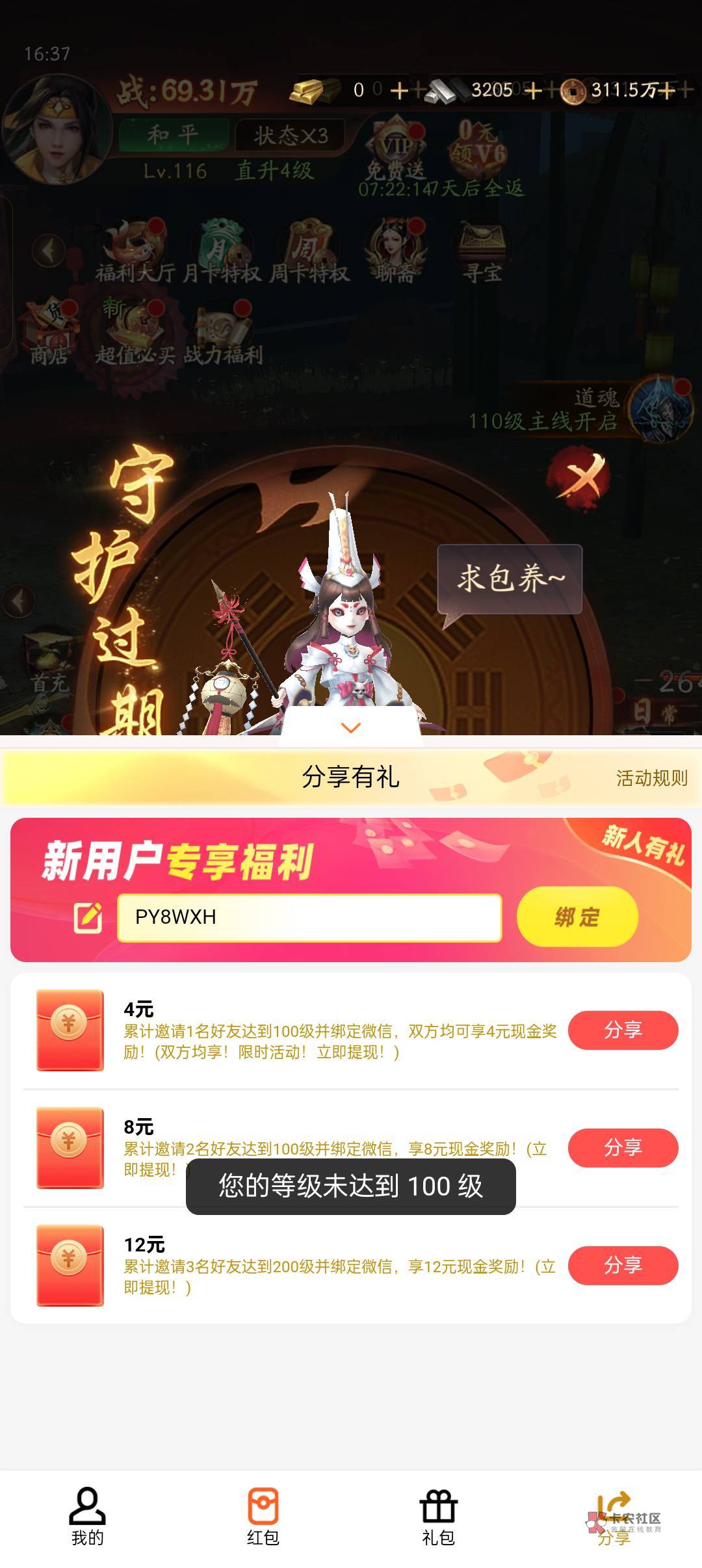 左边红包悬浮窗,分享有礼,绑定码。NGA2G3
