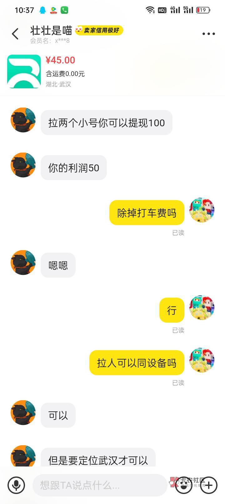 你不差你缺钱买药?你找个借口也找好点我第一次为什么要信任你?,我舔着脸叫你便宜几块钱?我跟你说别的老哥人家一人就是50,打车费他包,你呢,你打车费我出,剩下的还跟我5/5,我是不好意思去找别人,给你做这单你还好意思说别人添这脸,你不想赚你接什么???