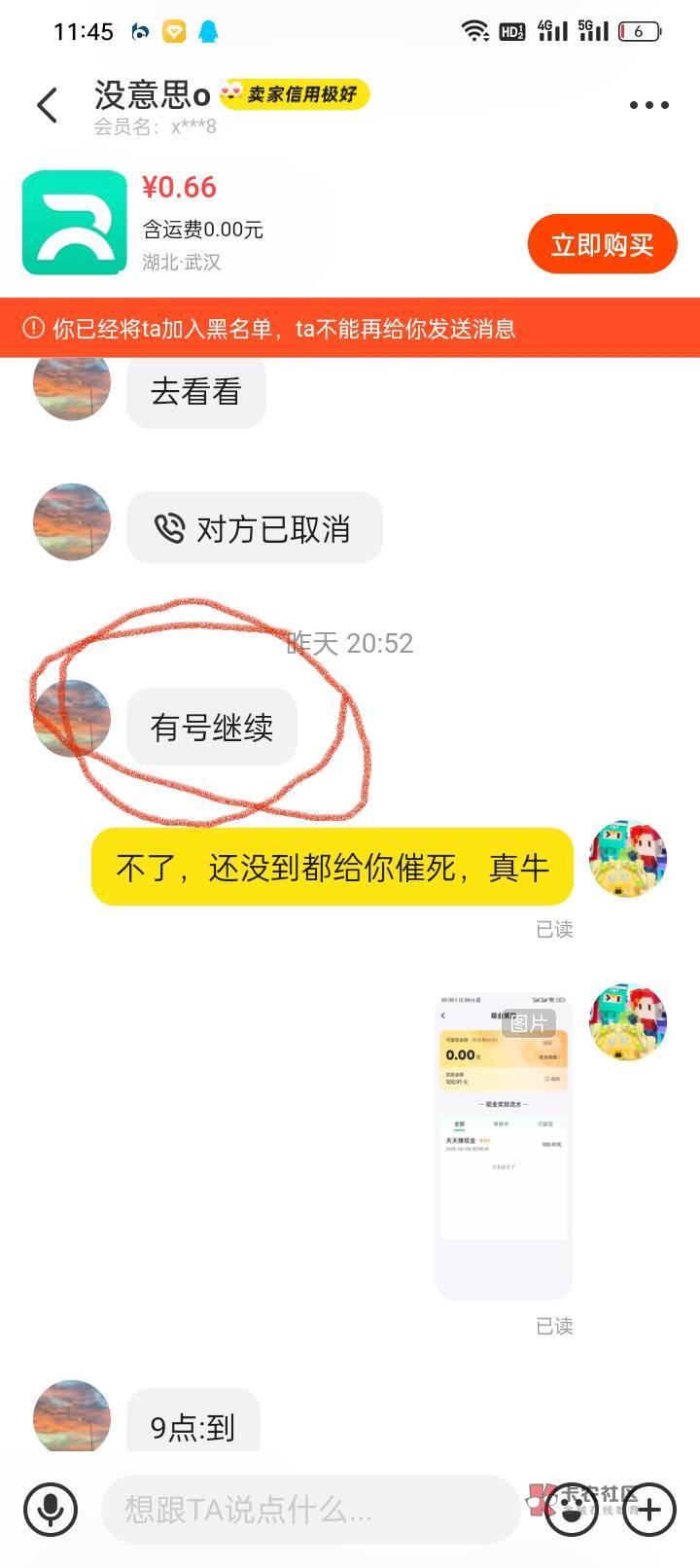 我欠你的怎么着?钱我已经垫出去了,凭什么没到账要给你收货,你凭什么想找我就得立马找着我,我就得立马给你待命回信息?你算老几,你自己骚扰别人还有理了,收完货不想跟你沟通了,给他拉黑了还有脸发短信骚扰别人,你生活没人说话怎么着?