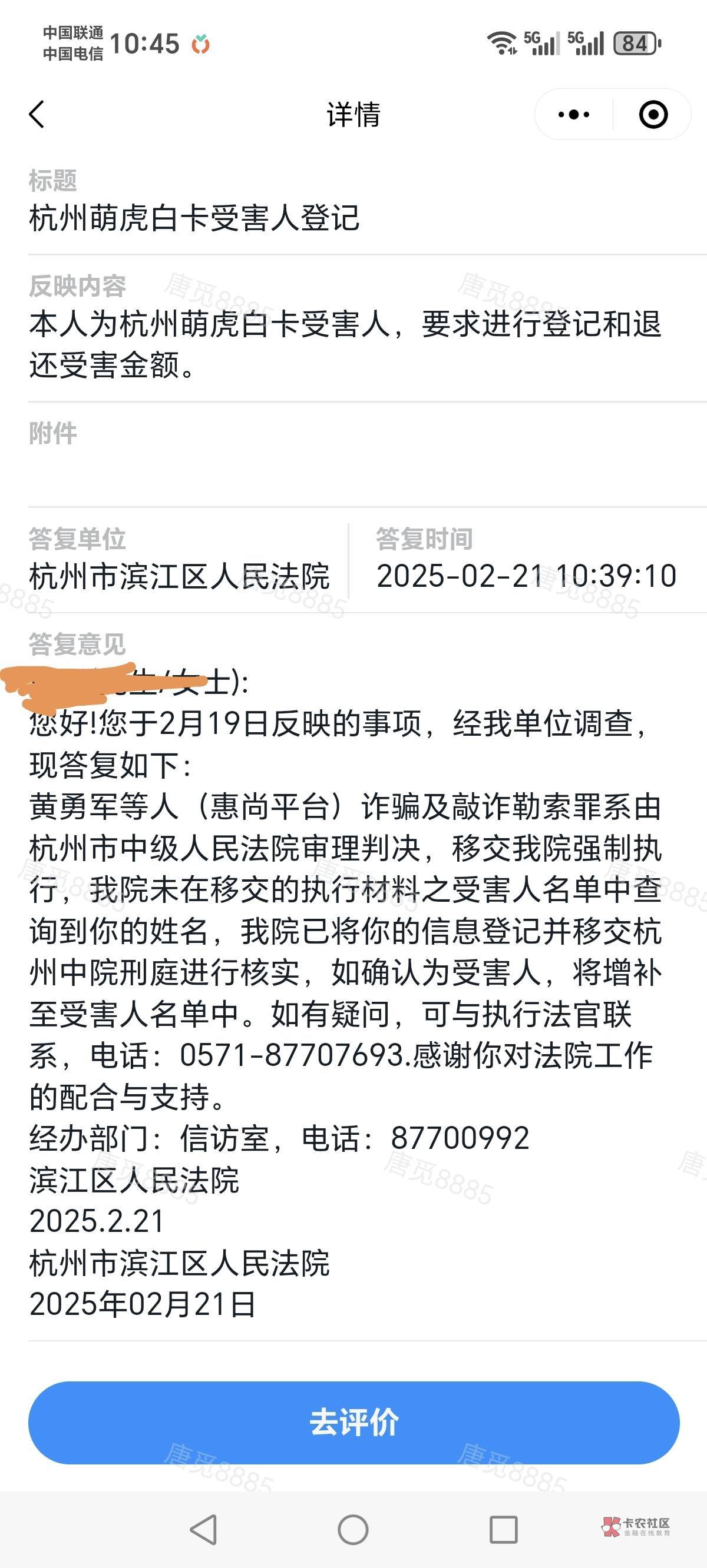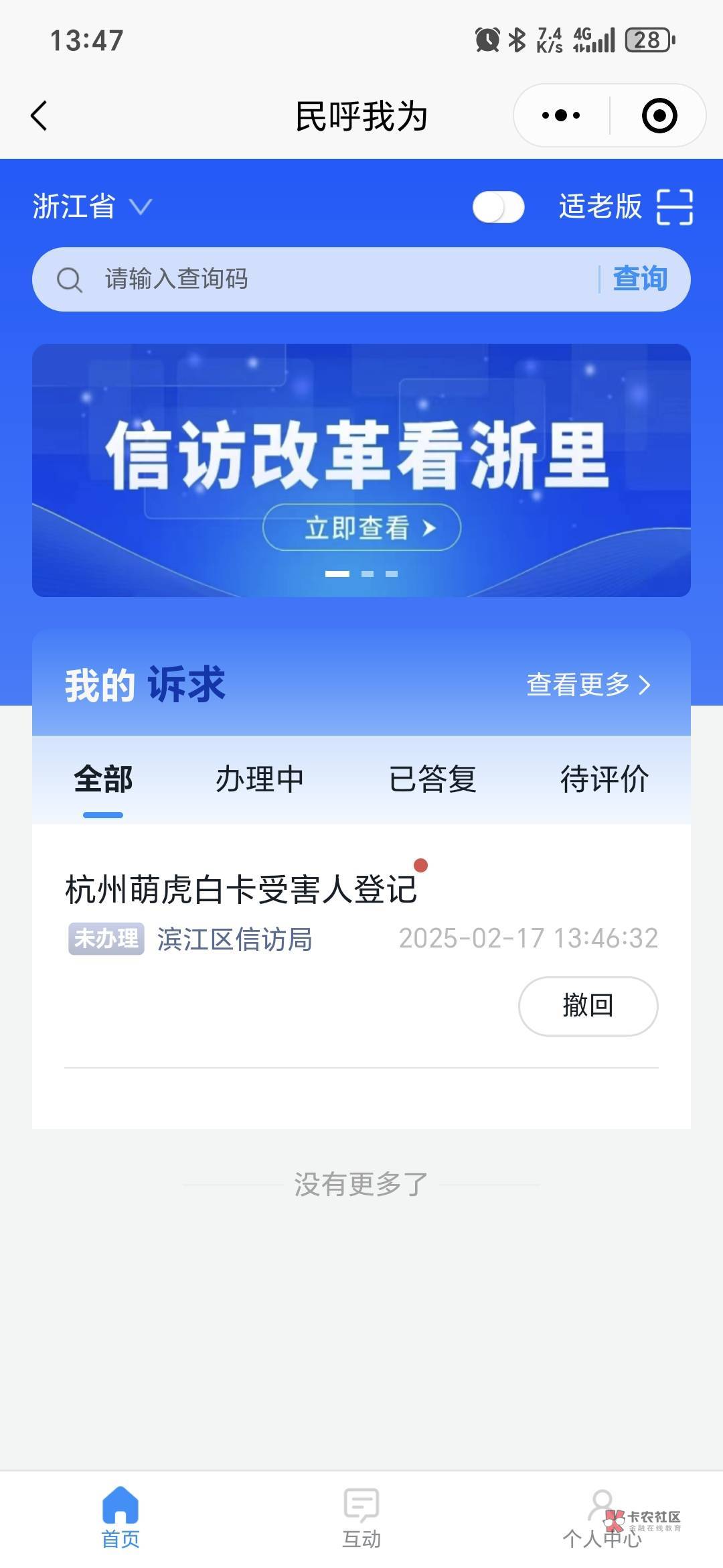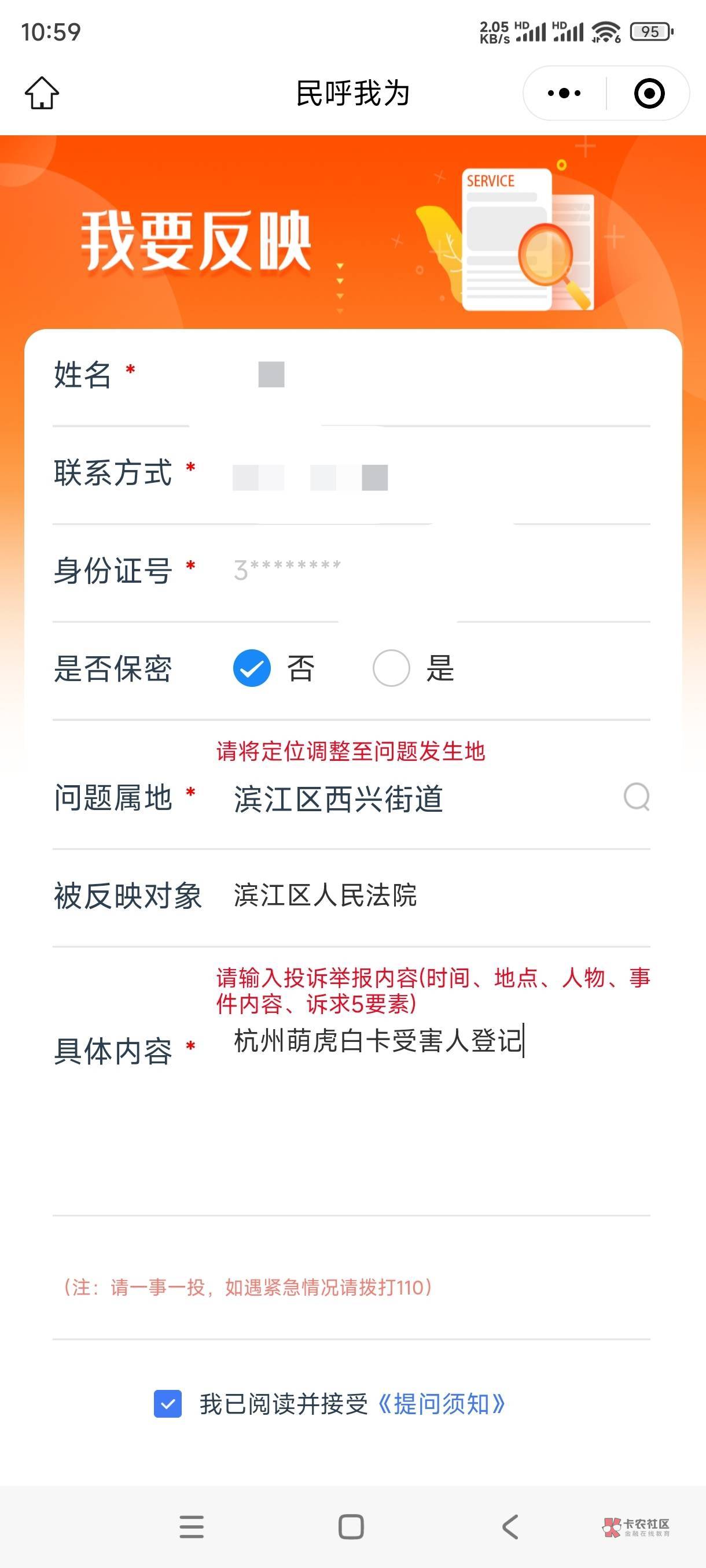 老哥,请问下是进去点击我要反映吗,然后给我的答复是让我联系12368反映,而且没有显示滨江区人民法院