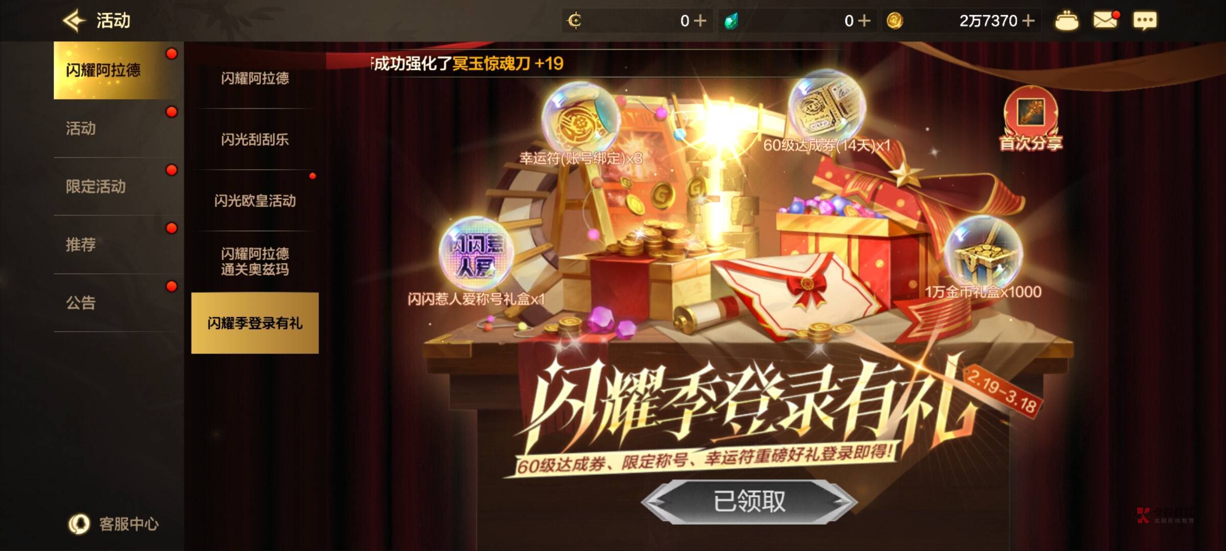 邮箱里领取,,,出来做个任务 聊天那里