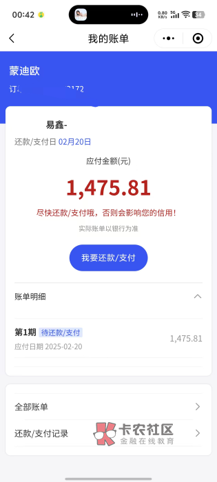 有时候确实它不会自动扣款 我之前好像是在 微信 易鑫车主服务 服务号 里面手动还款的