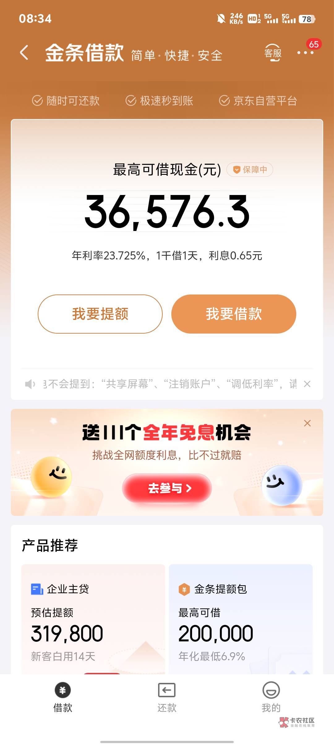 信用飞授信出额,查不查征信