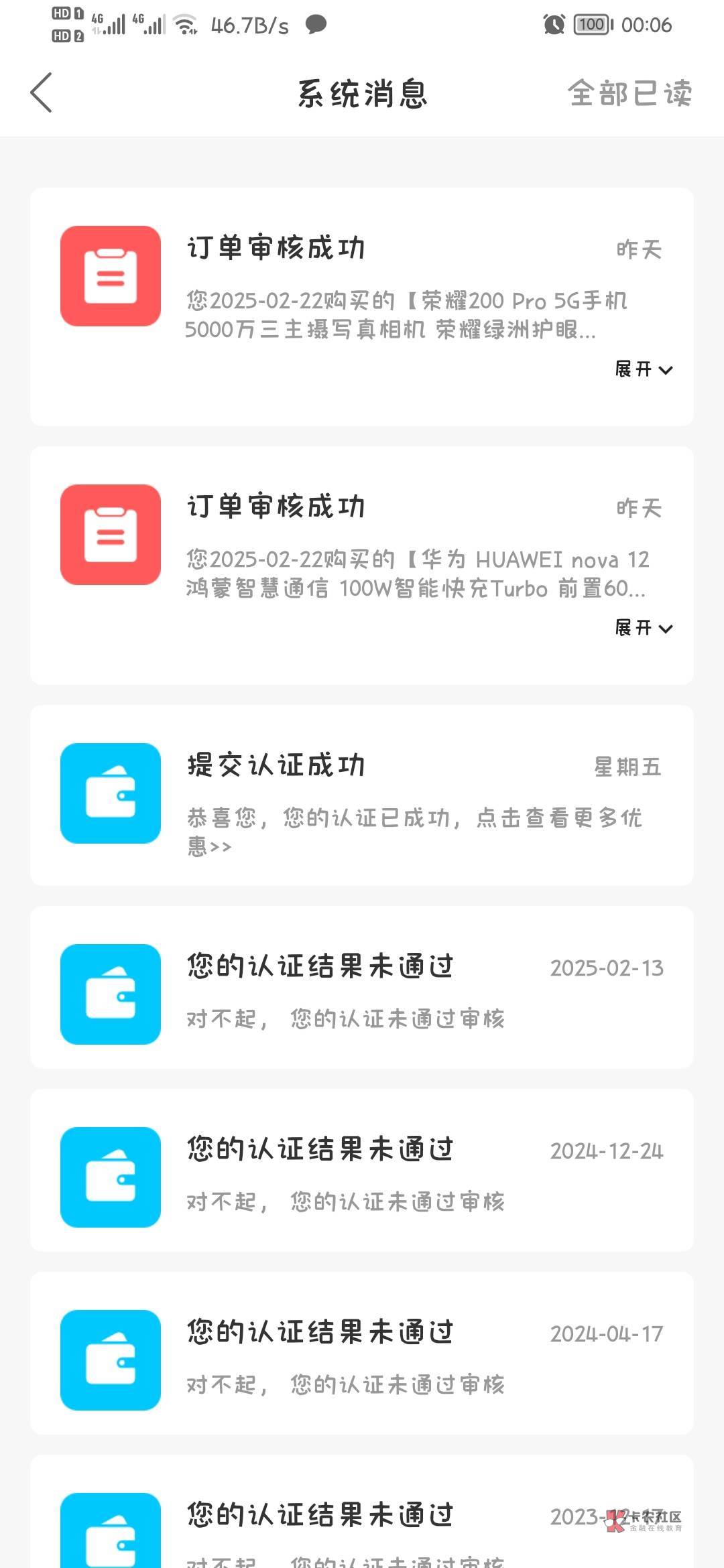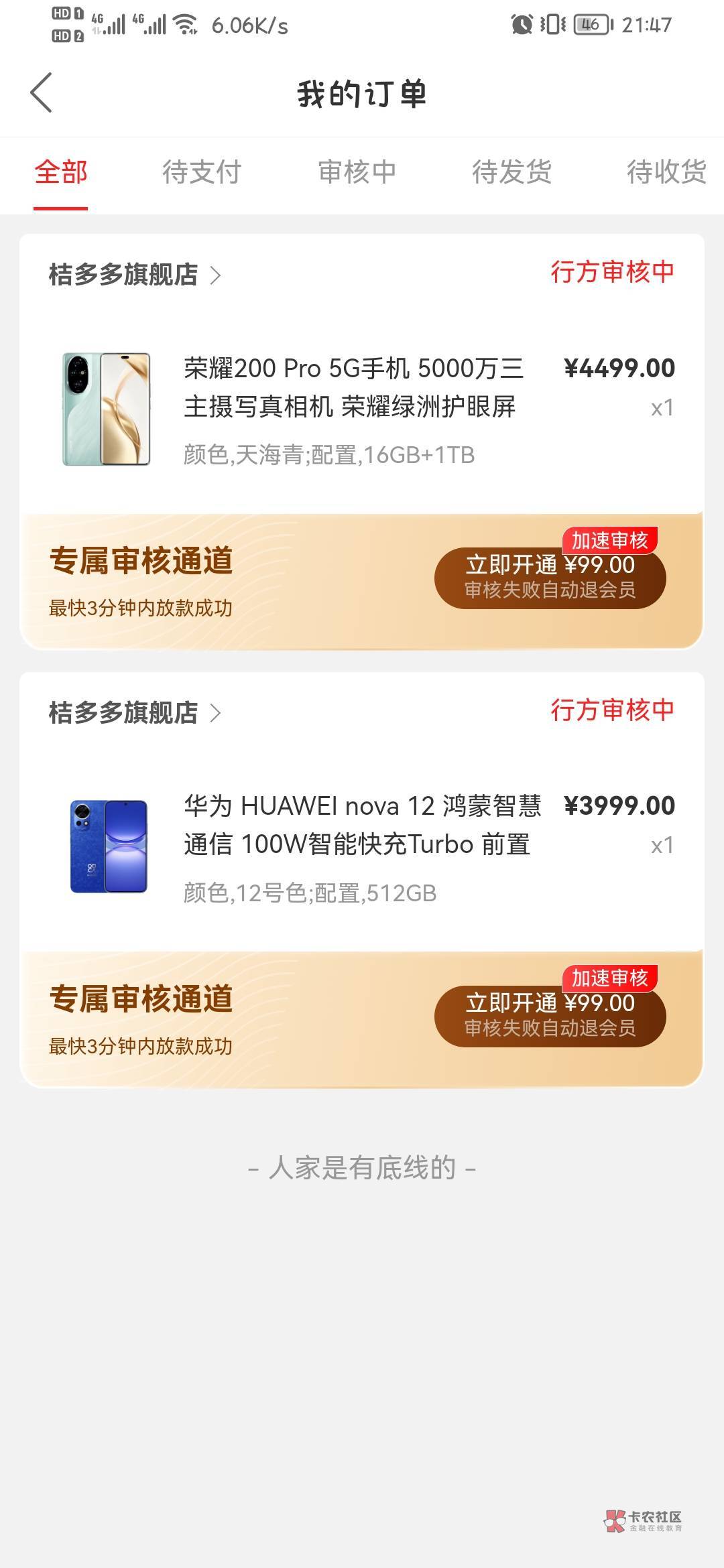 看这个消息,这样子就是通过了,虽然订单里还是审核中,但是这就是已经过了