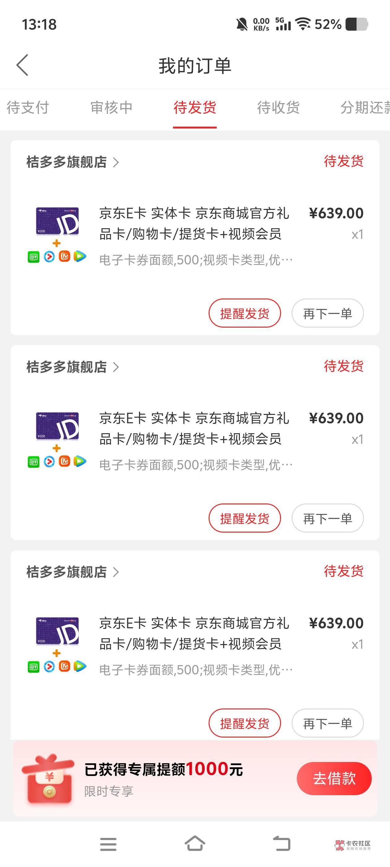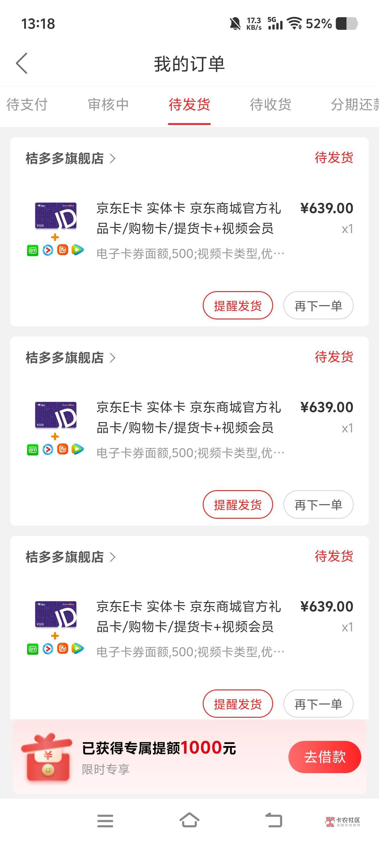 水果16 我取消了 京东e卡 实体卡快递到了