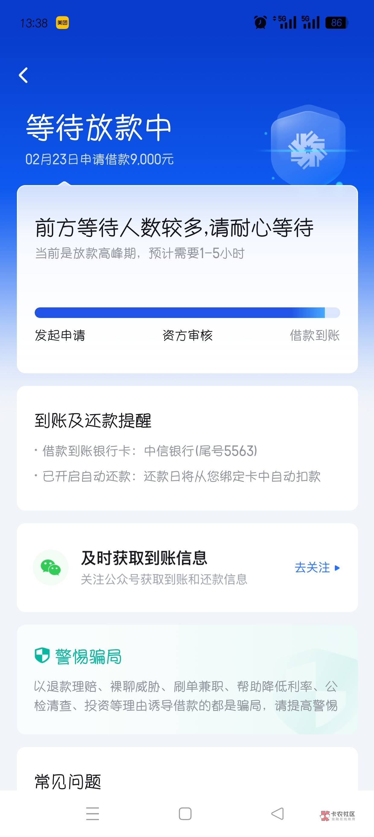 我情况和你差不多。等了1个星期,因为我YHK是三类。放款失败了。再申请就是3月6日再来了