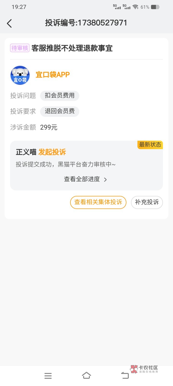 昨天下款,投诉后今天就退了