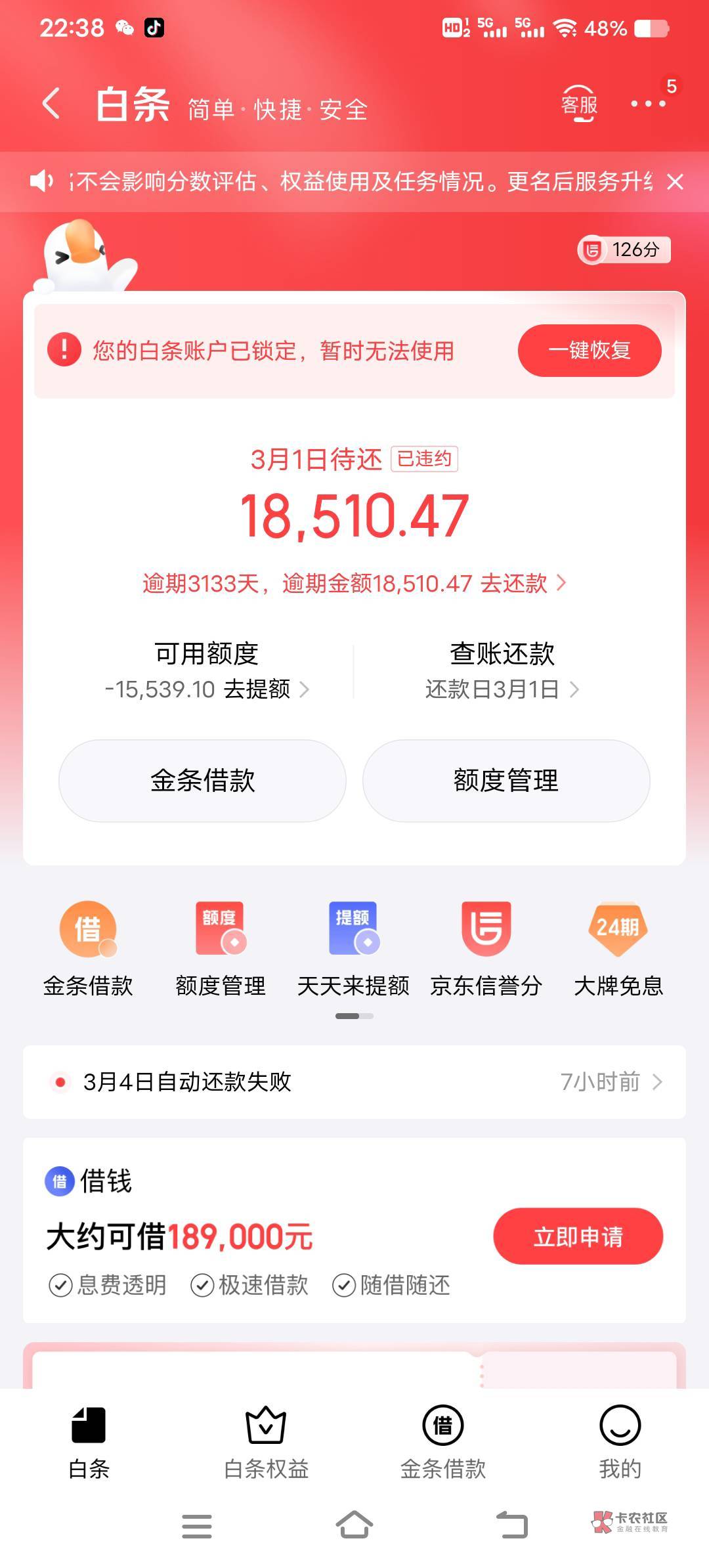 我白条逾期二天就上征信了