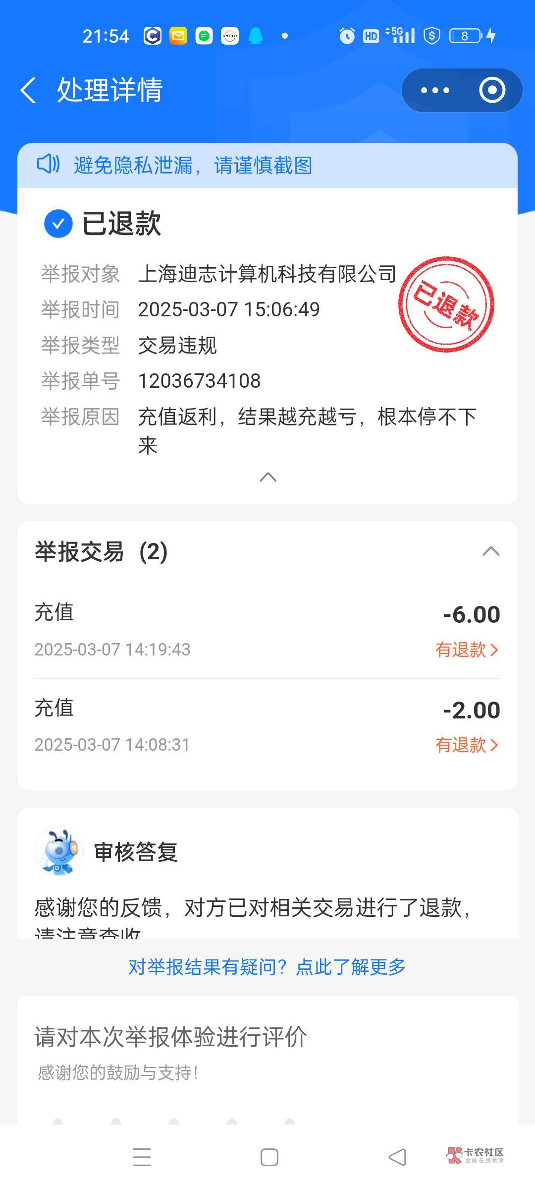 充值他给你返了,然后再申请退款,倍儿爽