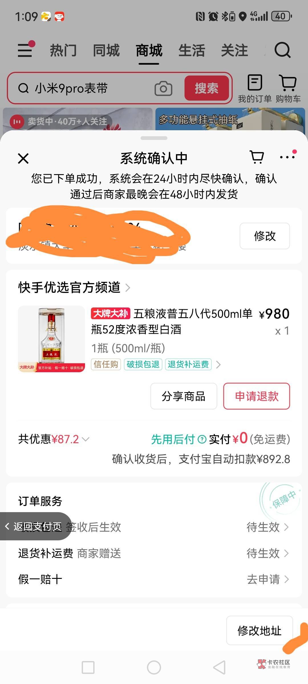 一牛回收,我PDD一填他的地址就不显示先用后付了,切换自己地址就有,