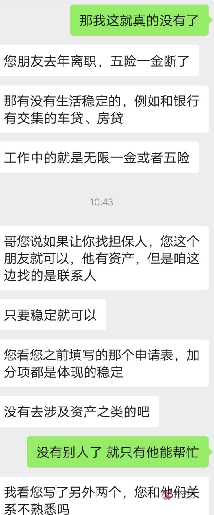 那时候我朋友也是急了 有个线下的说能让他贷5-10万。非拉着我去看看,过去填了资料,那个人拿着东西走了,过一会回来说资料不过,但是还有别的产品,要一个有五险一金正常工作的人做担保,我拉着他就走了 都是T路