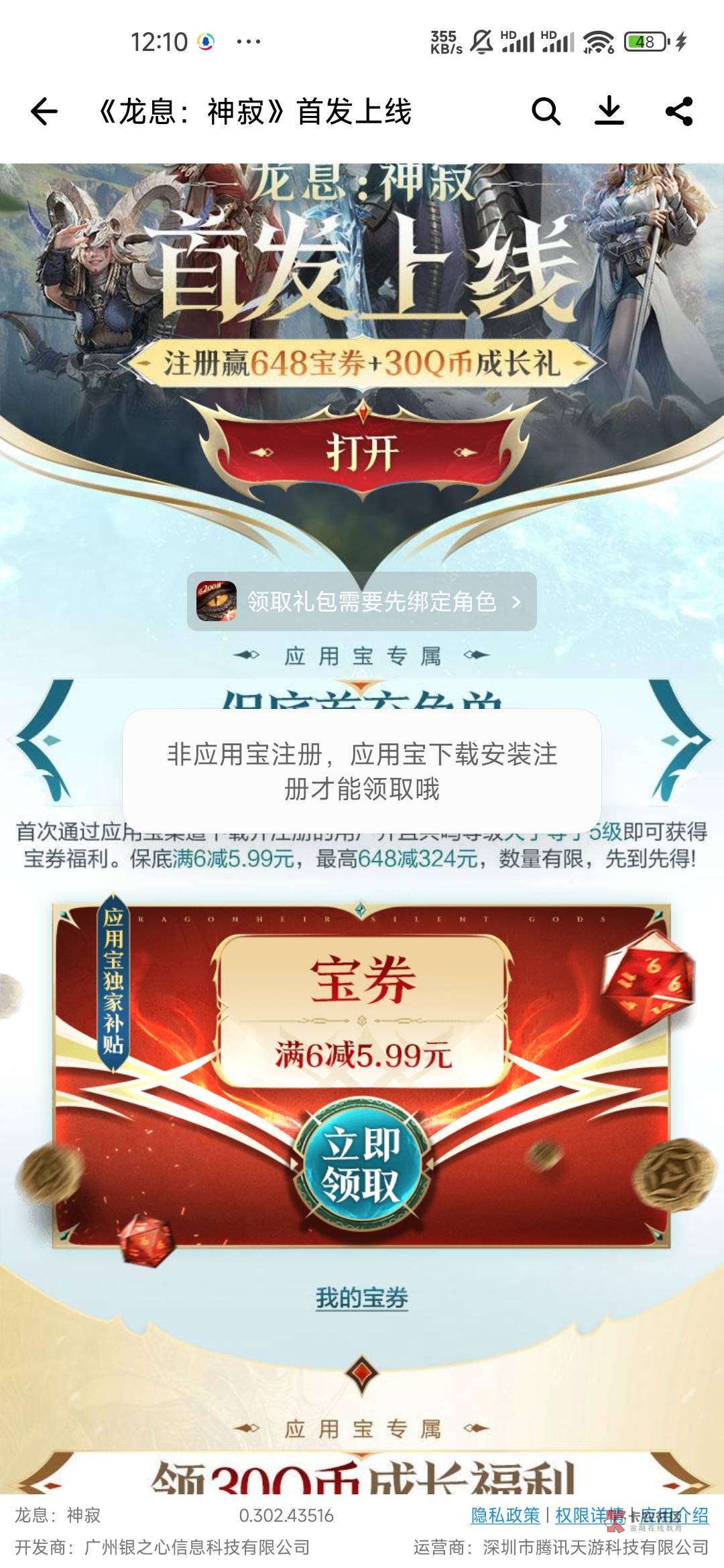 应用宝6-5.99券。