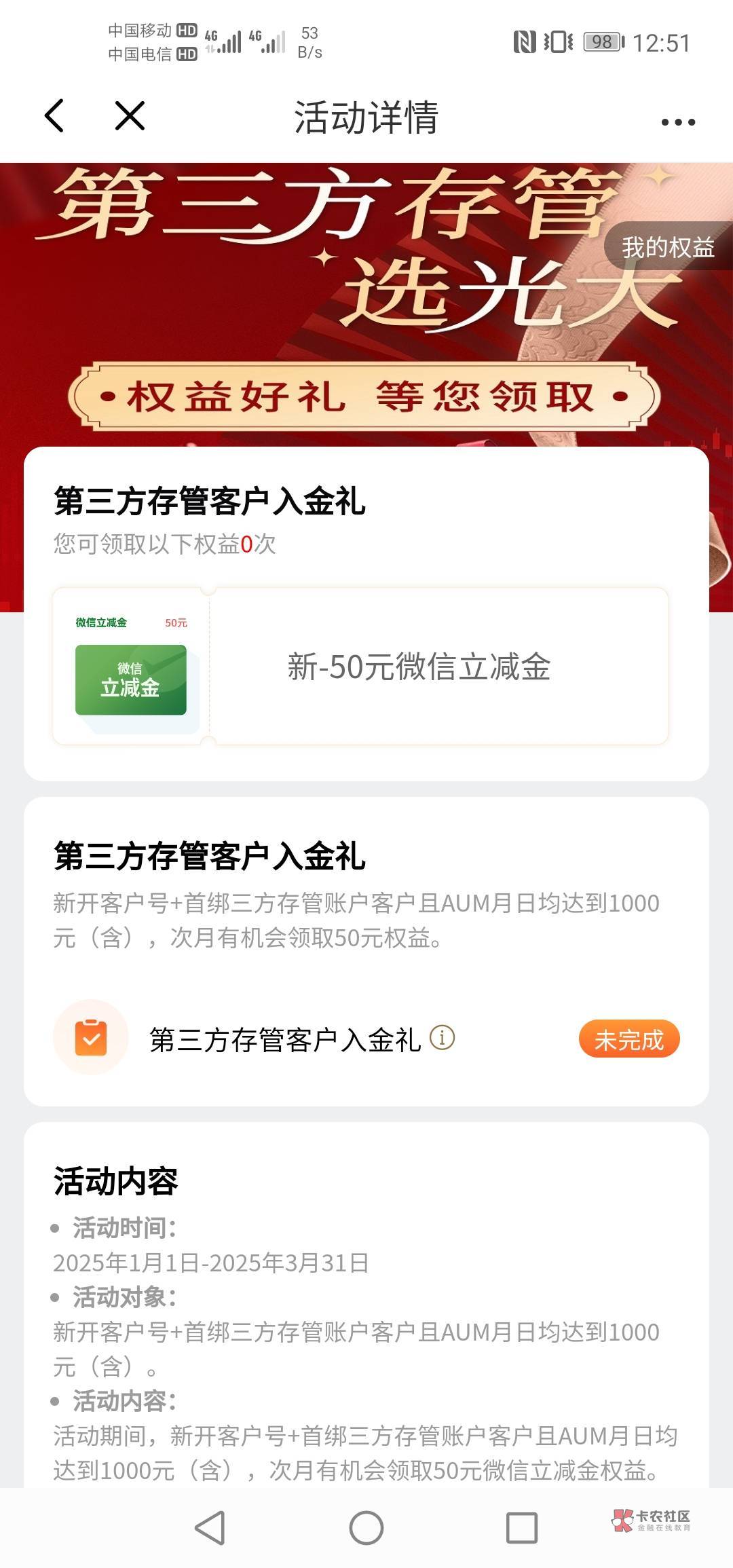 ,浦发厦门也有50,上个月做的,老哥应该做了吧