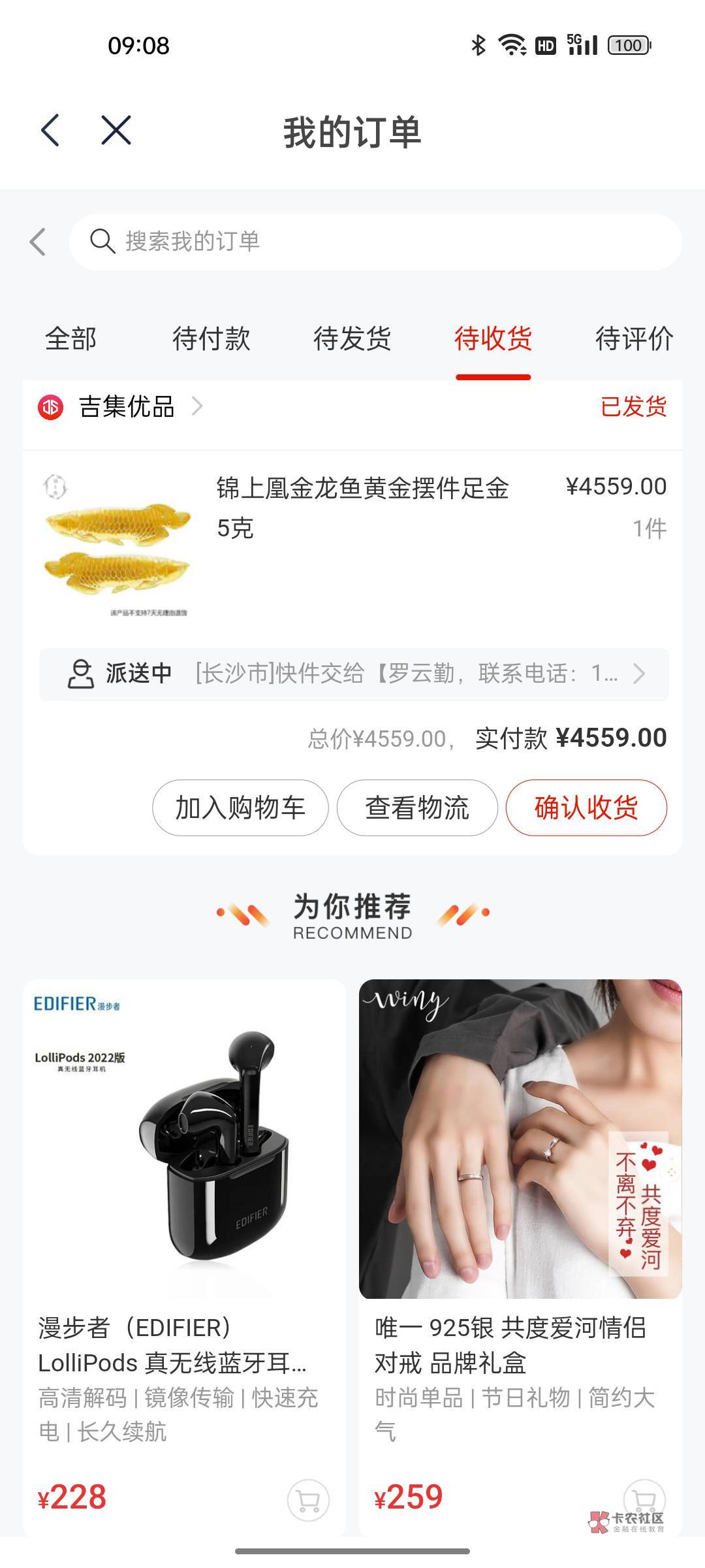 你这才5克,到手顶多三千五这样,哪来的三千九啊