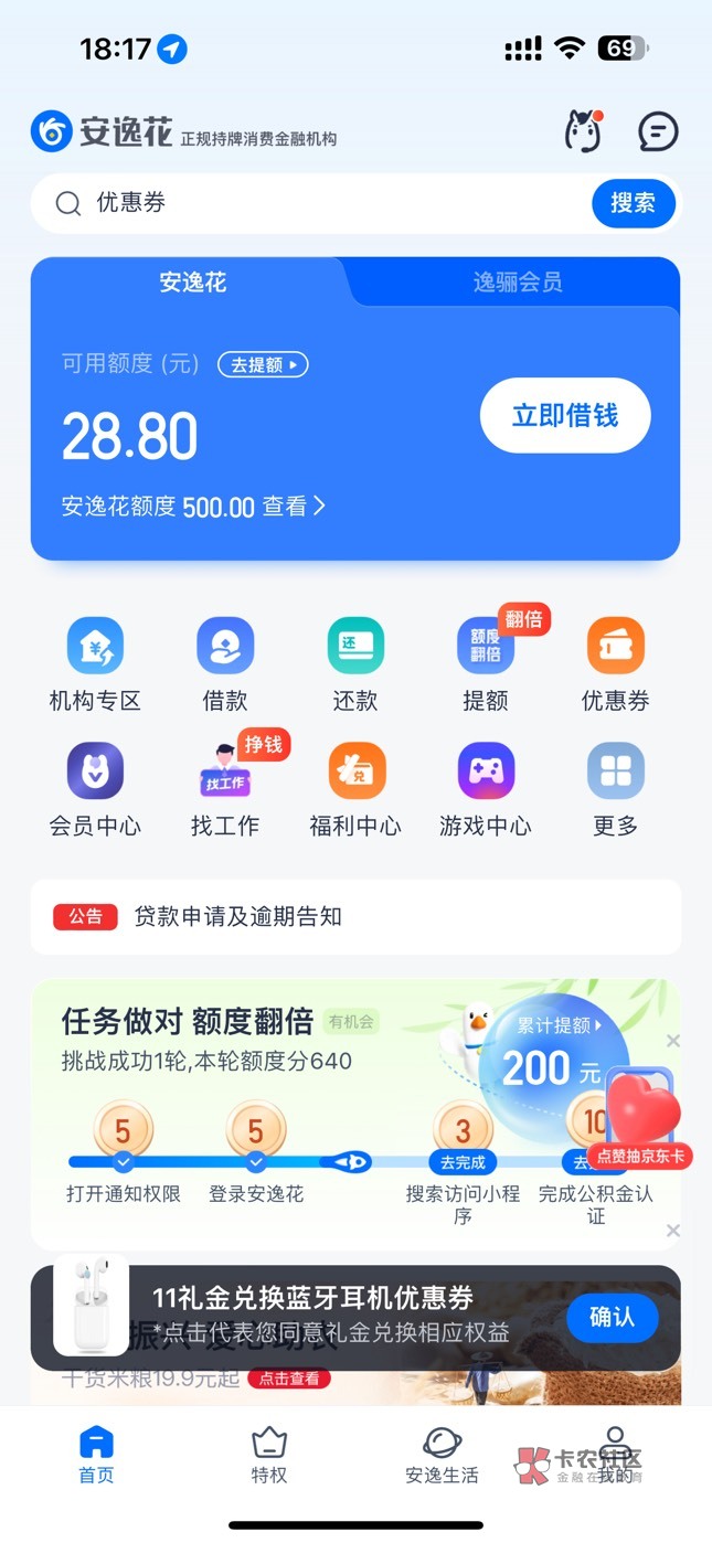 安逸花也T路我4个月了,上个月借2200给了100后天天点天天10几秒后拒,刚才用你方法开了个40会员先用后付,白送40
