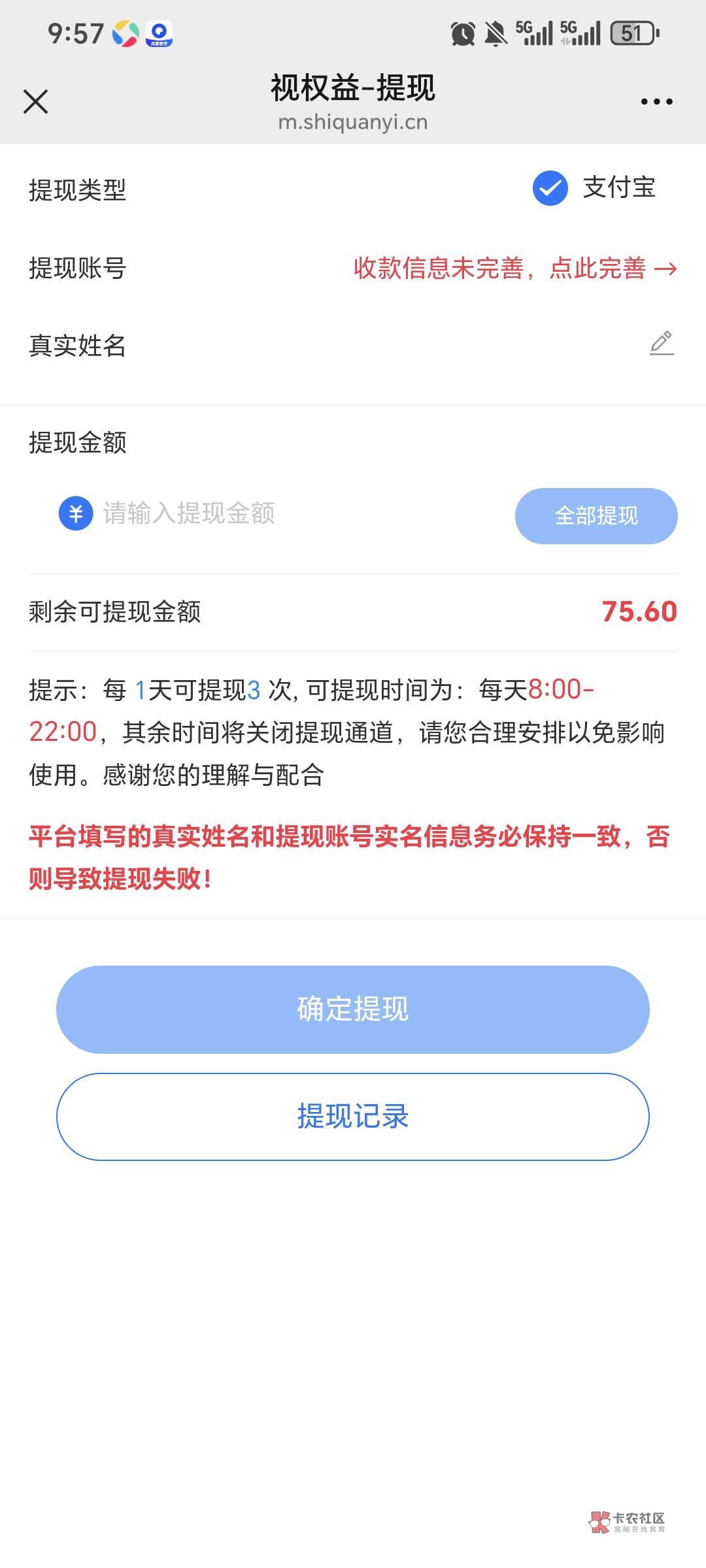 你那是网页 没有提现微信入口 视权益公众号进去有微信提现入口