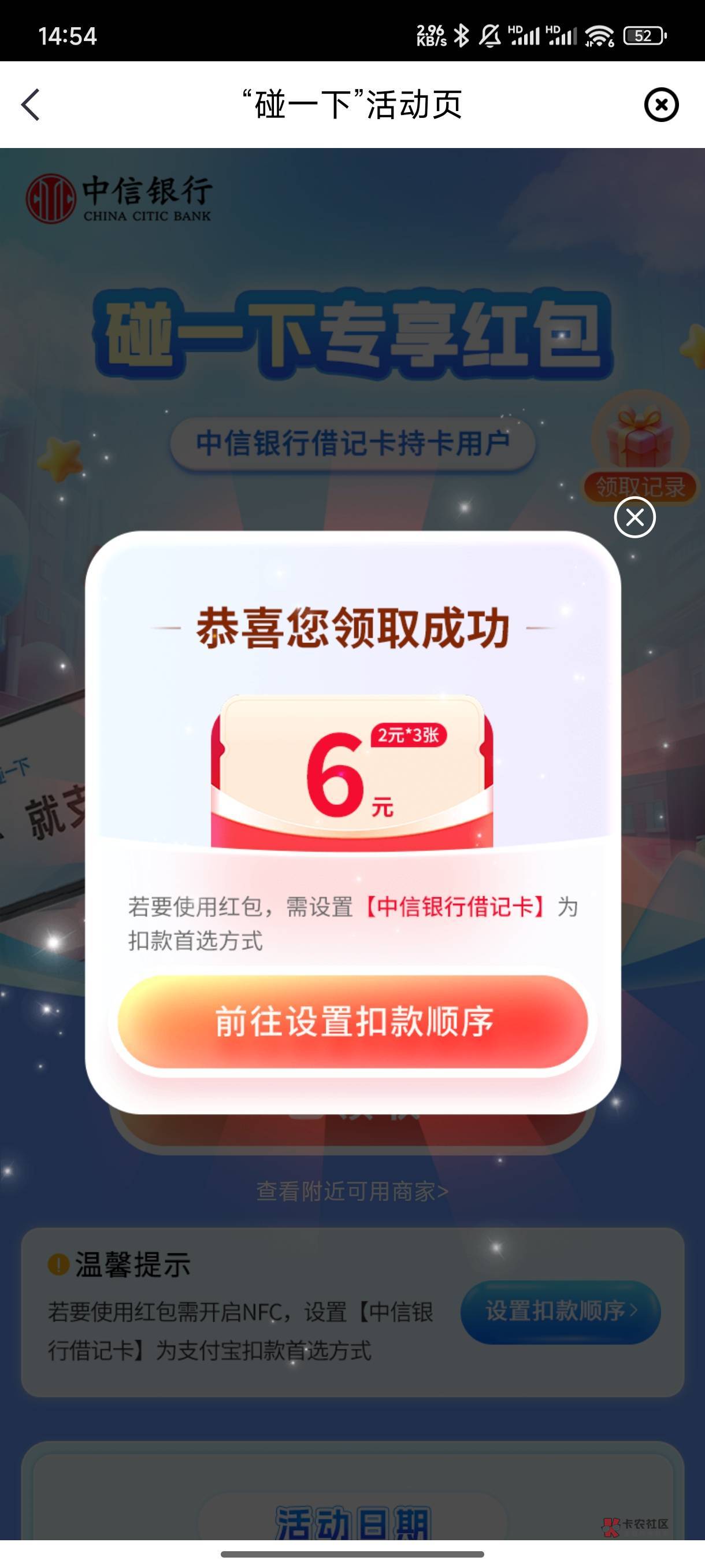 中信APP,会员,顶部活动,下拉到特色活动,就能看见了
