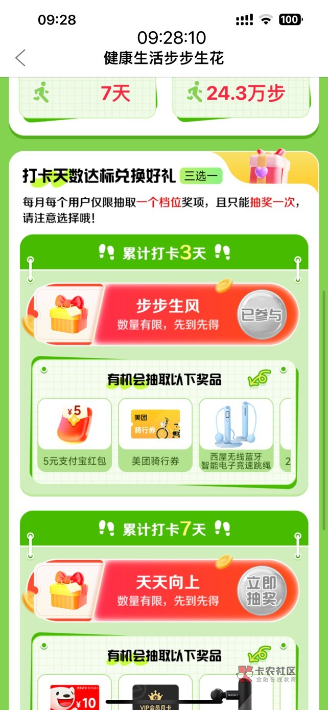没有刷步的了,3000步还要刷嘛,我都是每天晚上点打卡,今天为了抽奖,刚出头买烟步走的,回来就够了