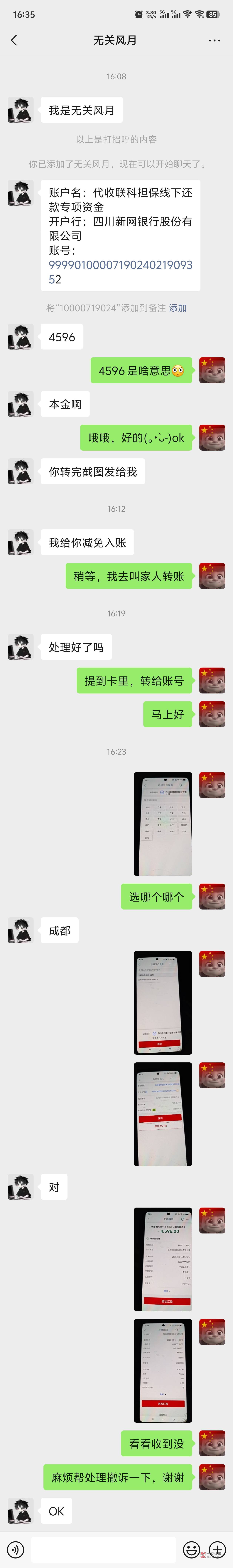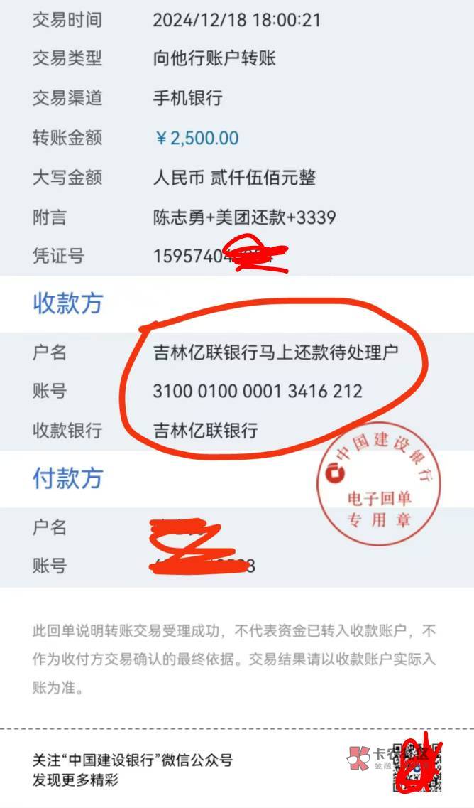 我下午收到易得花催收,说是到了当地法院检察院,我让家人借钱还款对公账号了