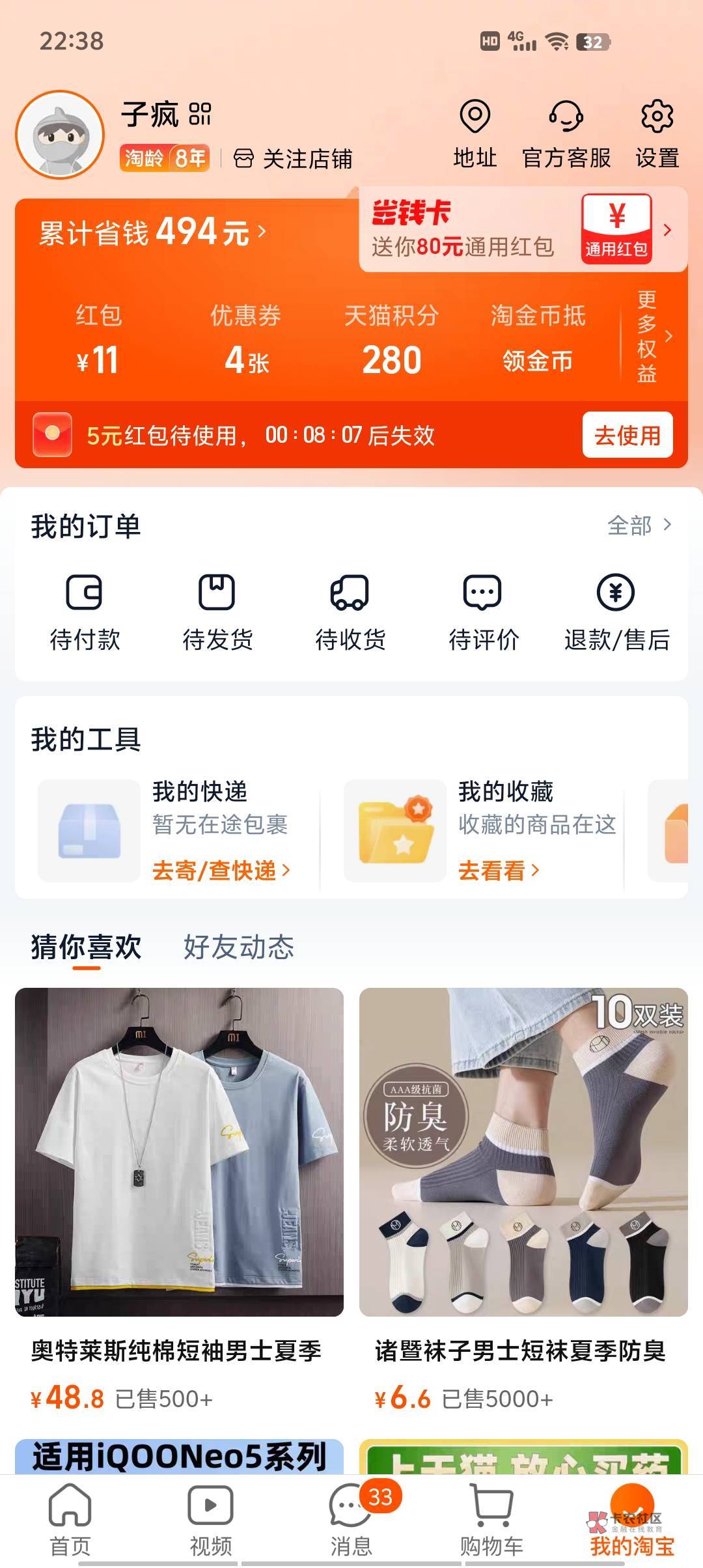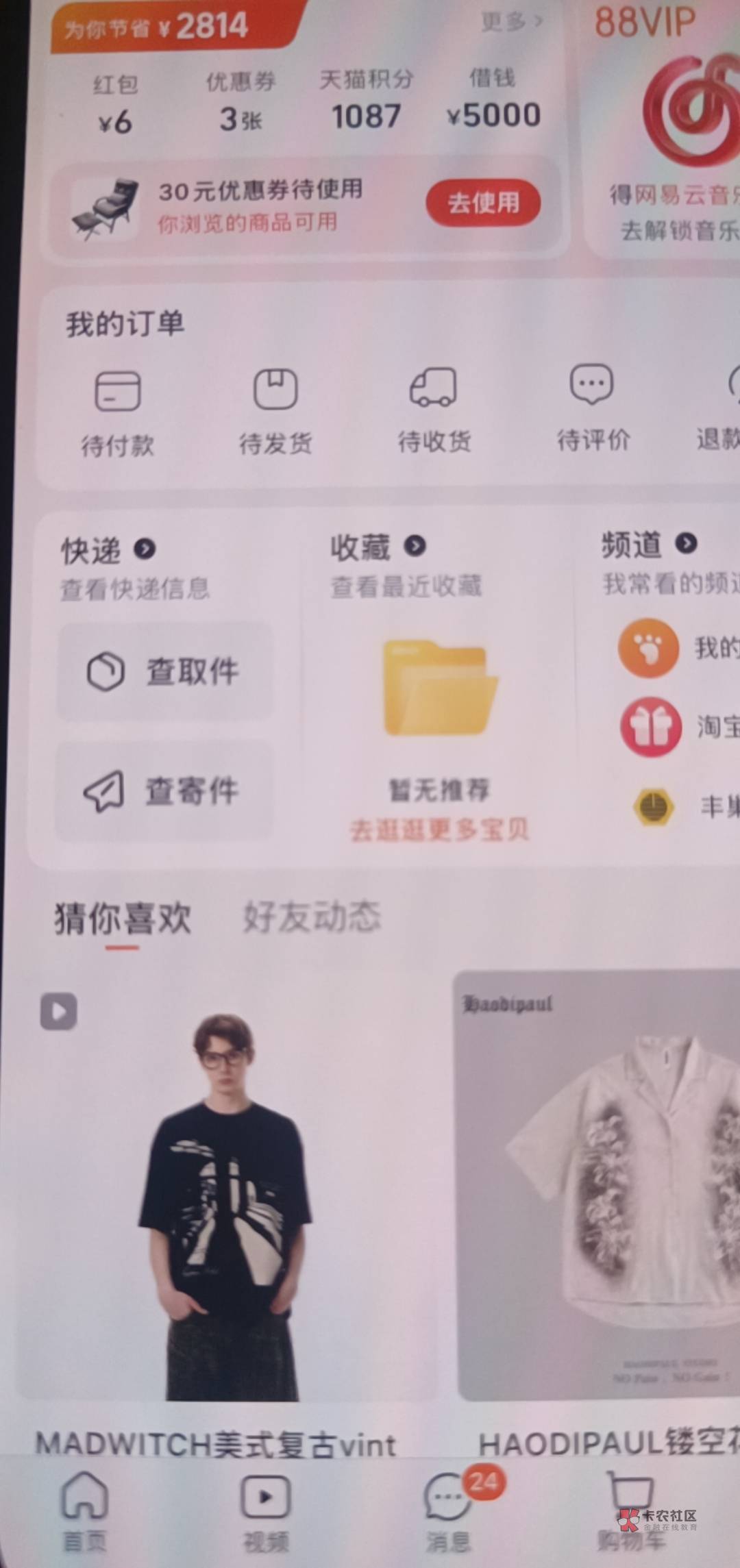 淘宝真有,我的也看见了,没点,点击我的,最上面红包,券,借钱