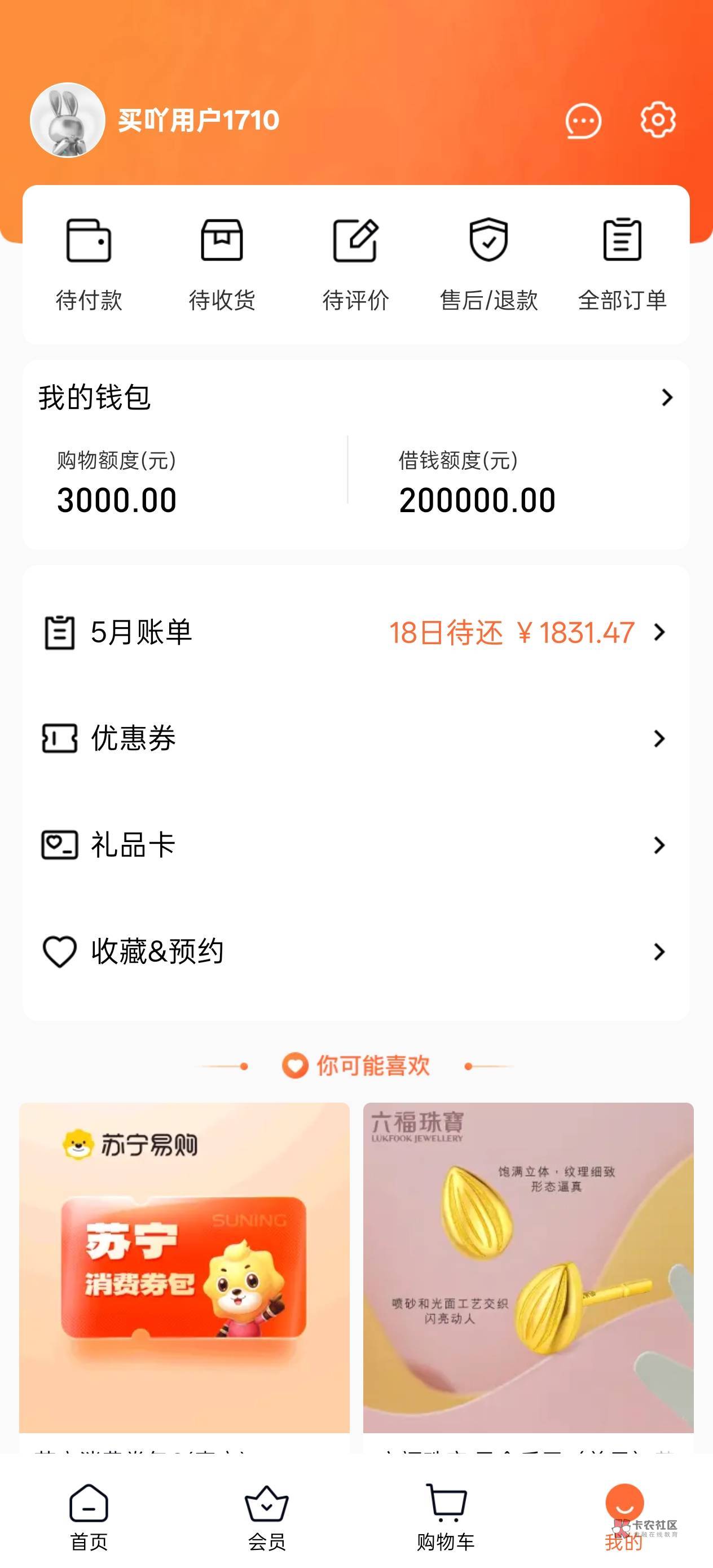 我购物额度5000买吖里面3000都不让用诶