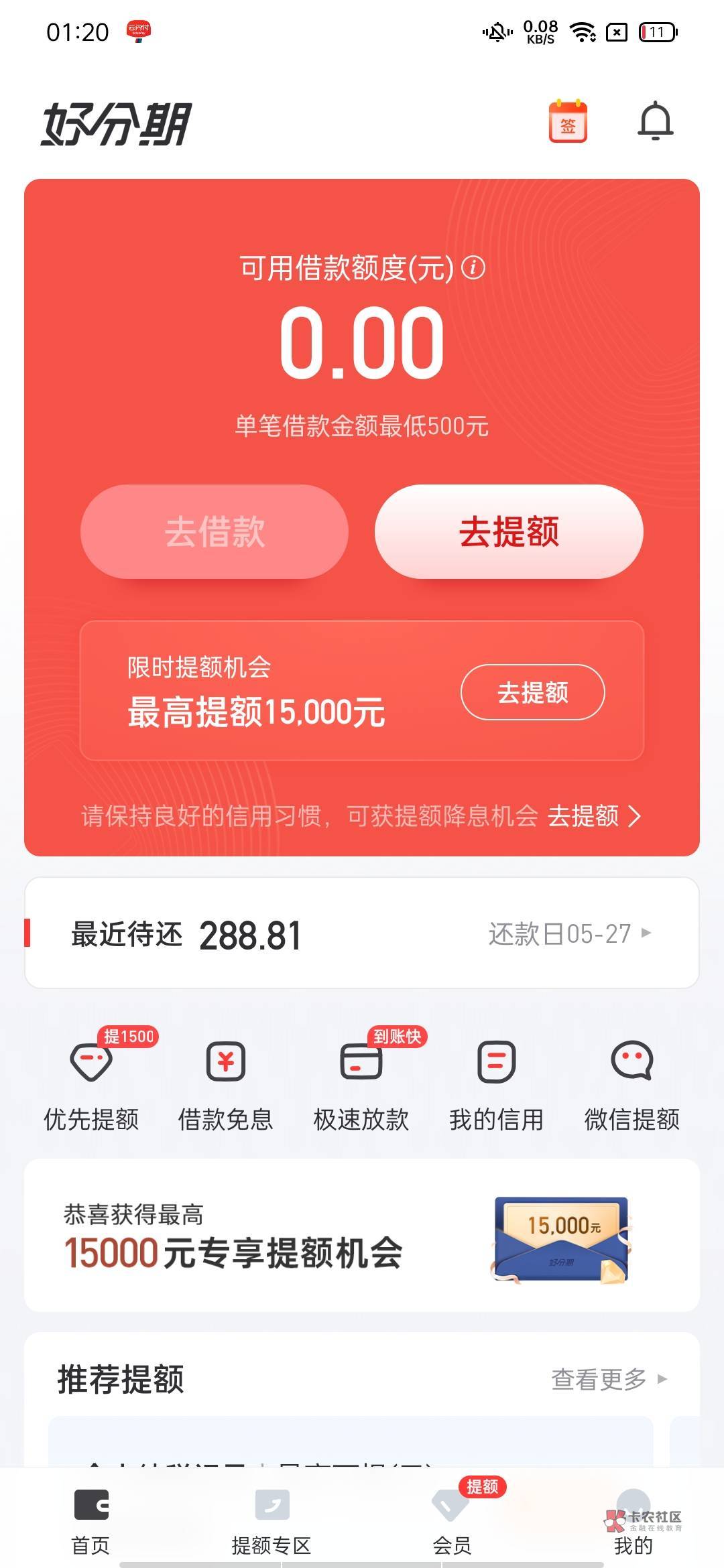 老哥们这个好分期开会员还能提升额度下款嘛