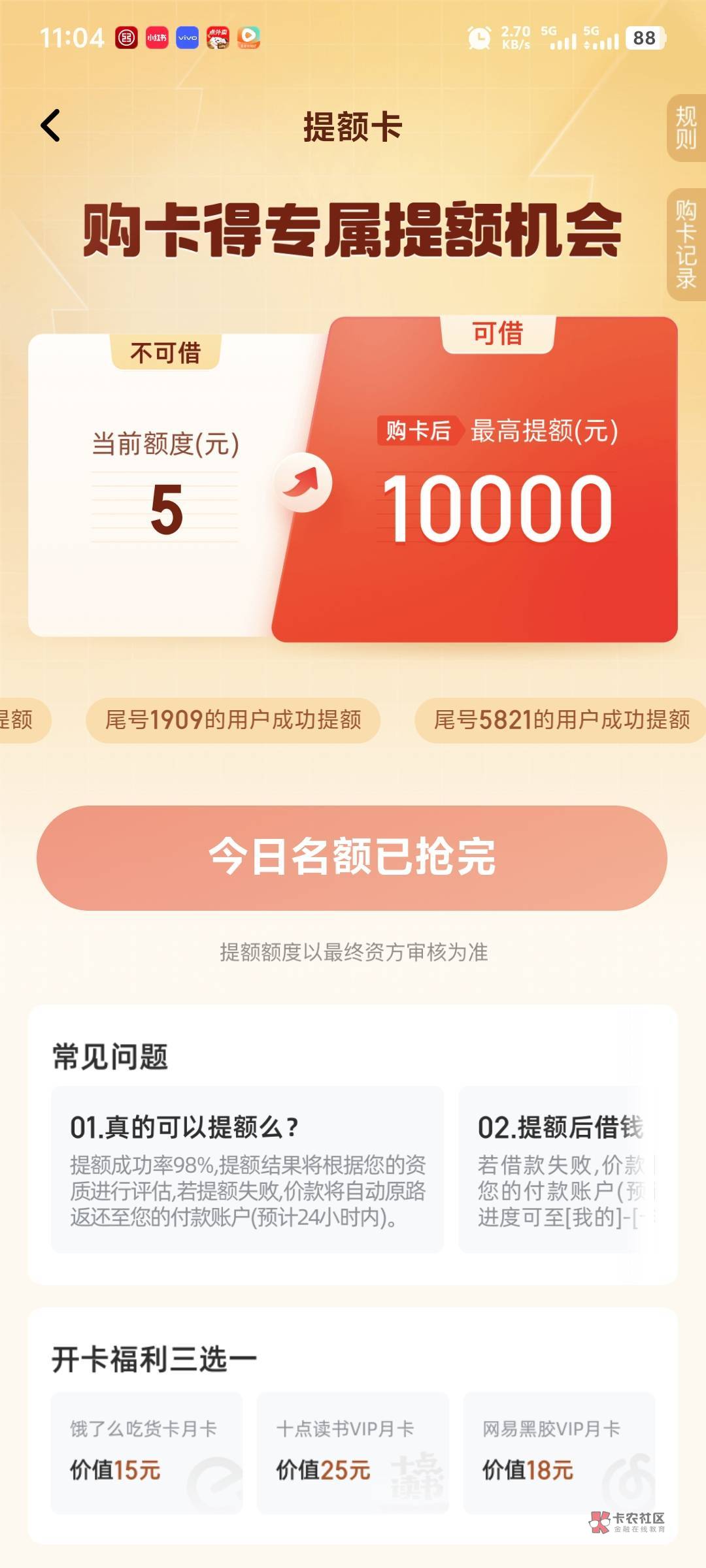 我现在每天准时发提升额度卡信息通知,每次点都没名额