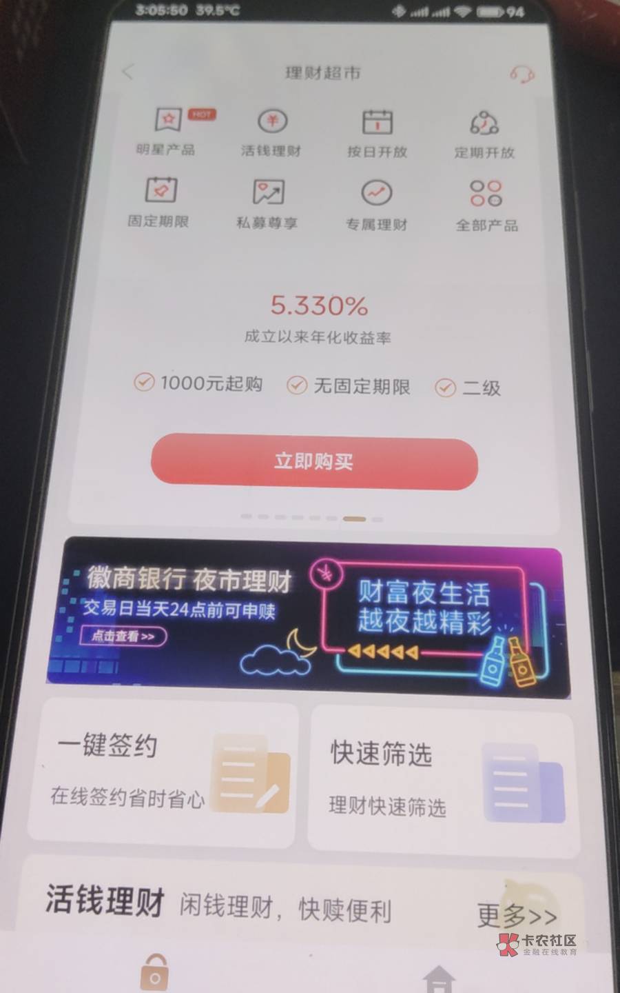 首页全部,找到那一栏便民生活,微享生活,乘风破浪财富领航,新客见面礼,可能刚开始显示不支持,回到首首页搜索理财一键签约在回去就能领了