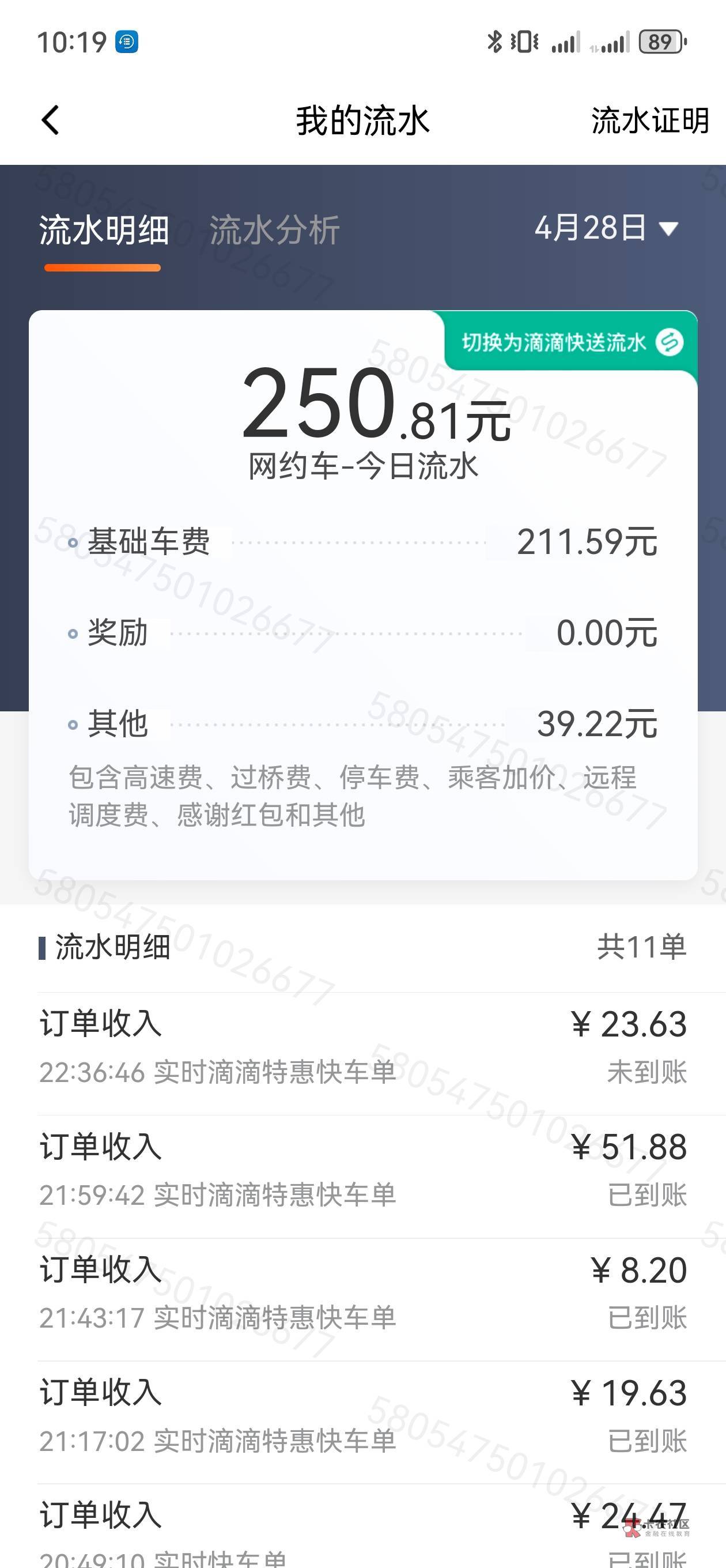 看你这流水,是自己的车吧。不然扣掉租车充电剩百来块