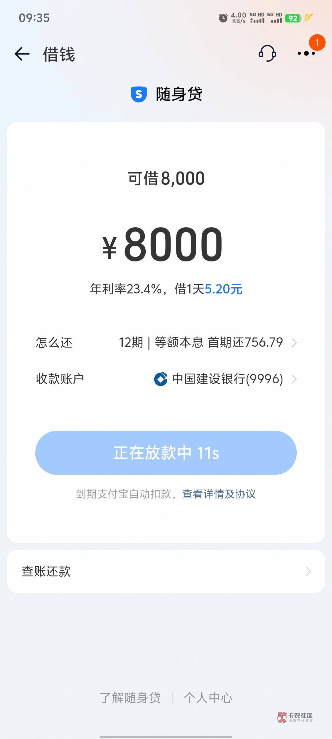 ,时间一到直接出额8000,我都懵逼了,秒到