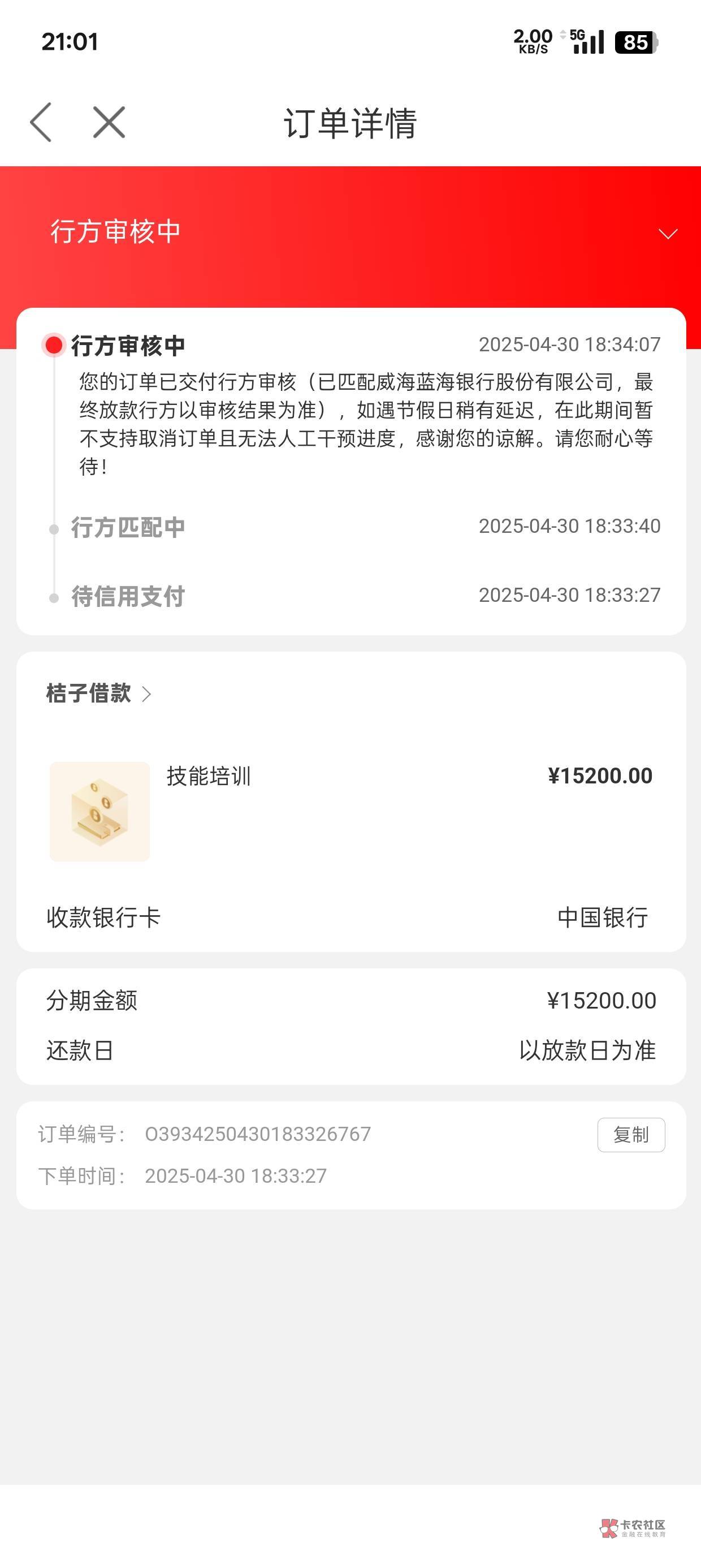 夜间本来放款审核都慢,而且威海本来也慢。明天还是五一,慢上加慢可能明天睡醒就到账了