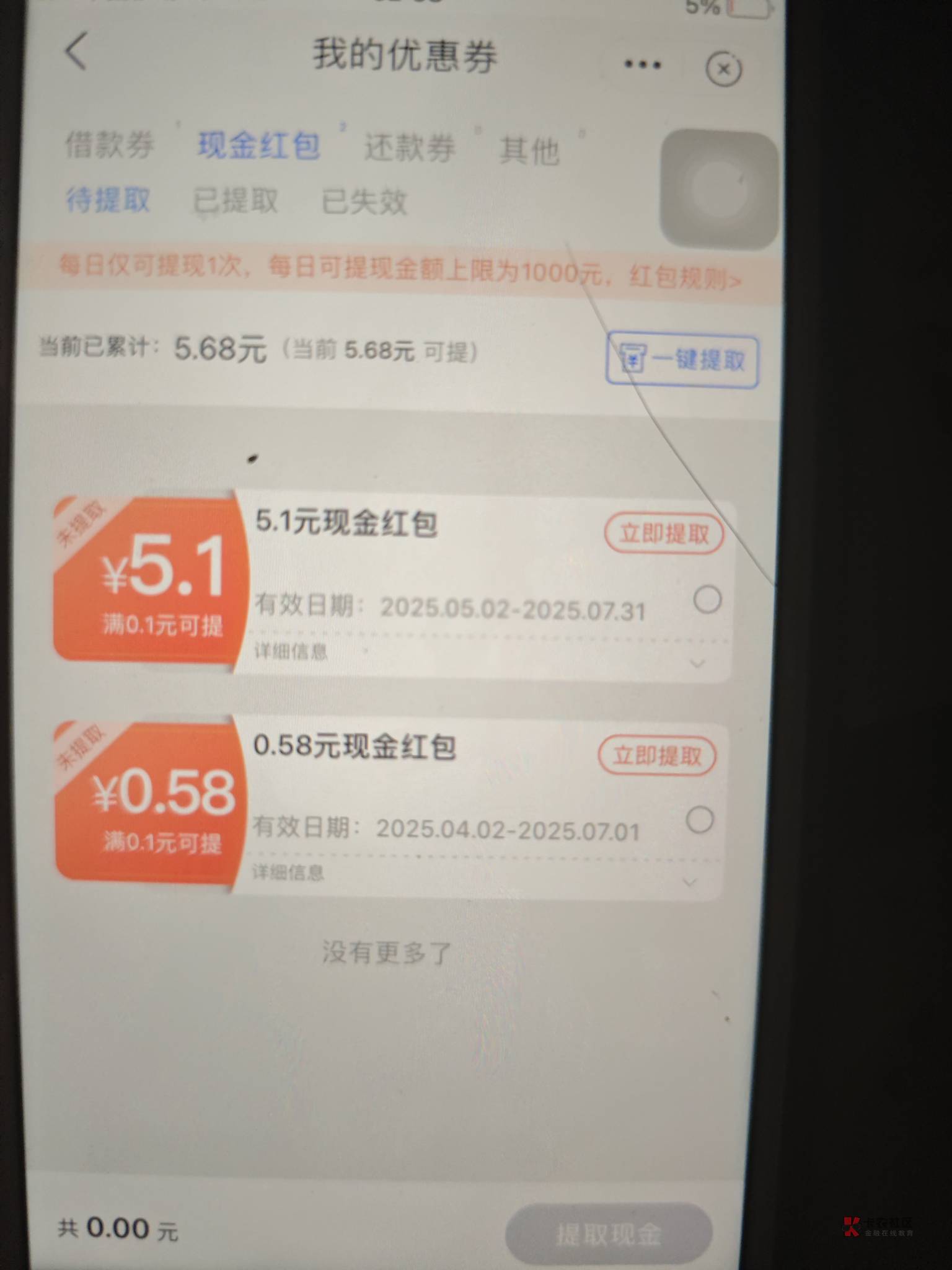 昨天领了5.1,今天还能领吗
