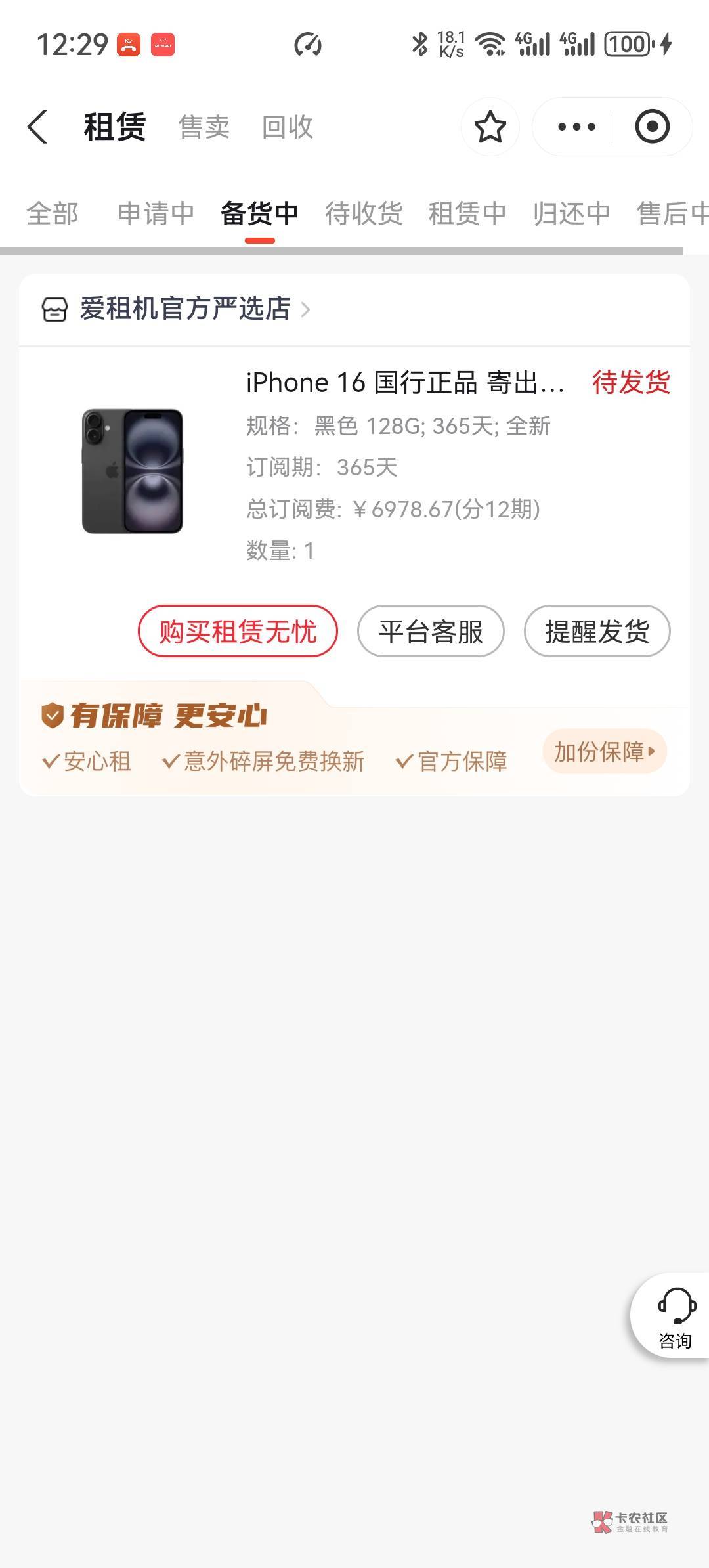你这个租机前期多少?我有一台人人租的剩最后一期,我也打算申请一下爱租机或者人人租