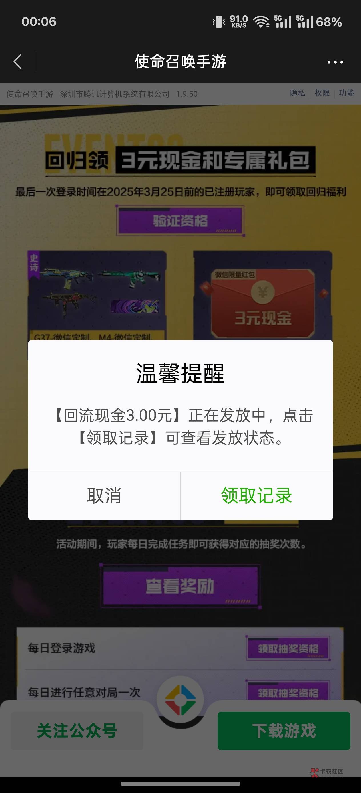 新用户和回归都有5,vx下载不安装,ry安装一次后面的号换账号登录ry就行,不用重复下载,在RY把账号弄完卸载使命然后在每个v下载不用安装领3