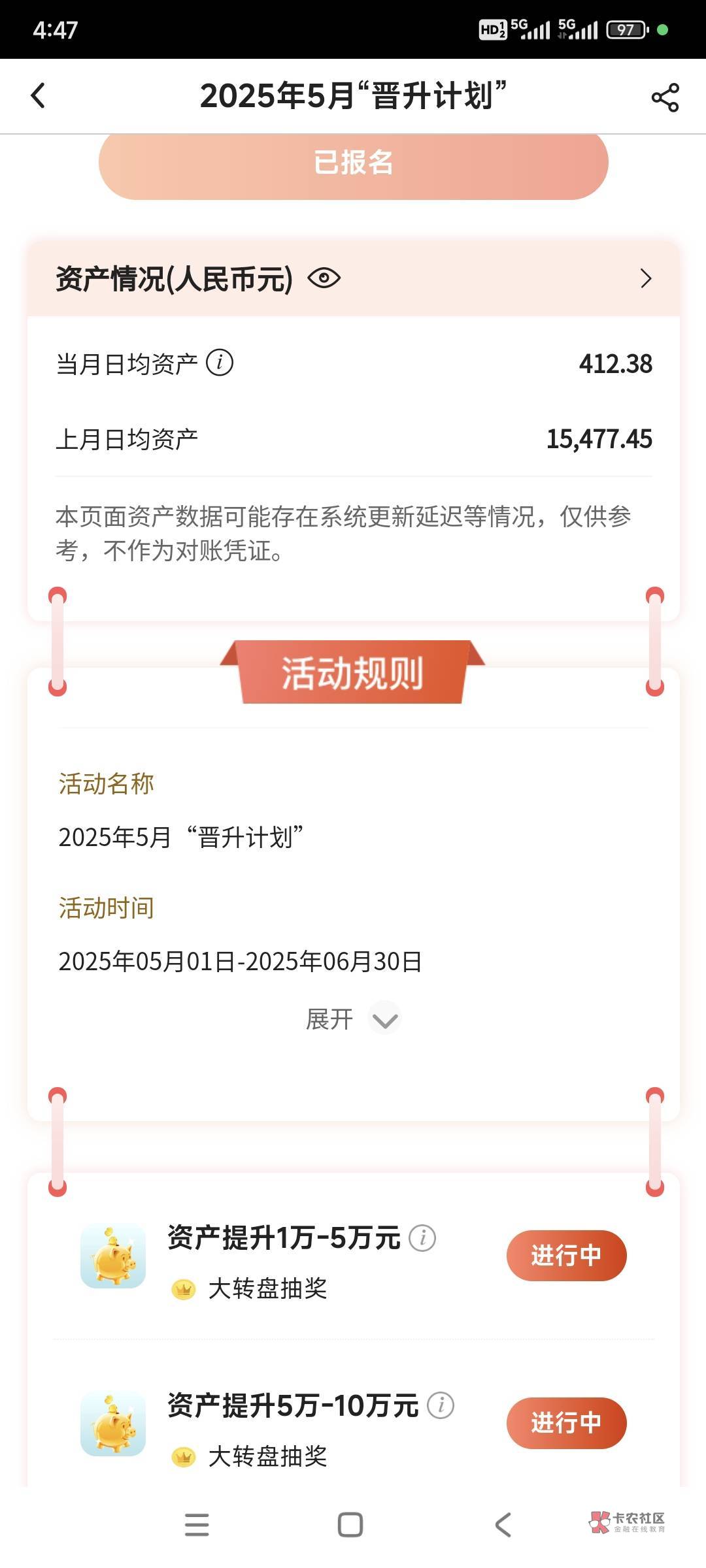 嗯,月末资产达标100+资产提升50+保底8.5w积分+月资产100+点亮9重礼保底288。美滋滋